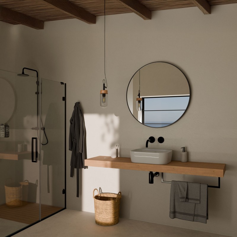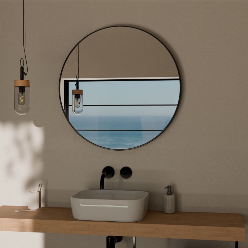 El espejo redondo PADUA de 90 cm. de diámetro destaca por su diseño minimalista y elegante, ideal para ambientes que buscan equilibrio entre funcionalidad y estética. Su silueta pura y sin artificios convierte cualquier pared en un punto de atracción visual sutil y refinado.