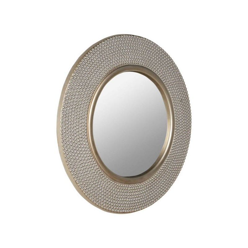 Fabricado en poliuretano moldeado, su diseño circular con relieve en patrón de pequeñas esferas combina referencias vintage con una presencia contemporánea, ideal para ambientes que buscan distinción sin exceso.
