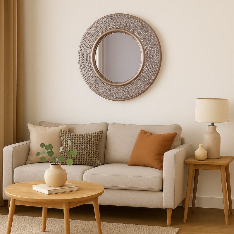 El espejo decorativo BERKELEY destaca por su marco en tono plata envejecida, que aporta un aire refinado y elegante con un toque clásico muy actual. Su acabado ornamentado crea una textura visual rica y sofisticada que eleva cualquier espacio.