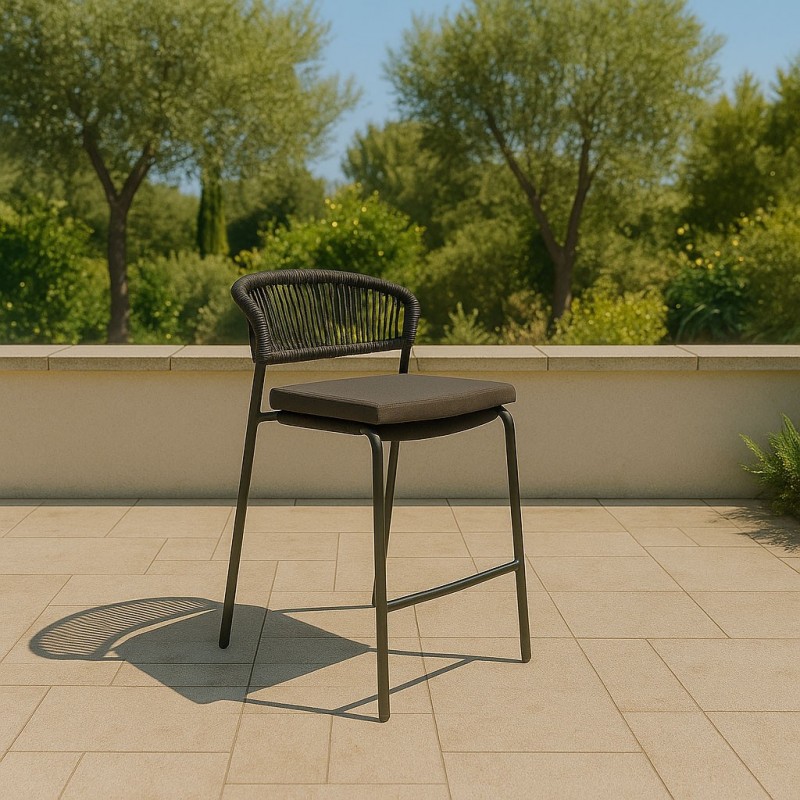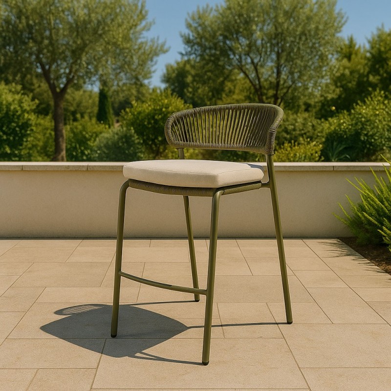 Disponible en una paleta de colores naturales y contemporáneos, se adapta con facilidad a barras exteriores, terrazas o patios modernos. Una pieza que aporta carácter sin sobrecargar el entorno.