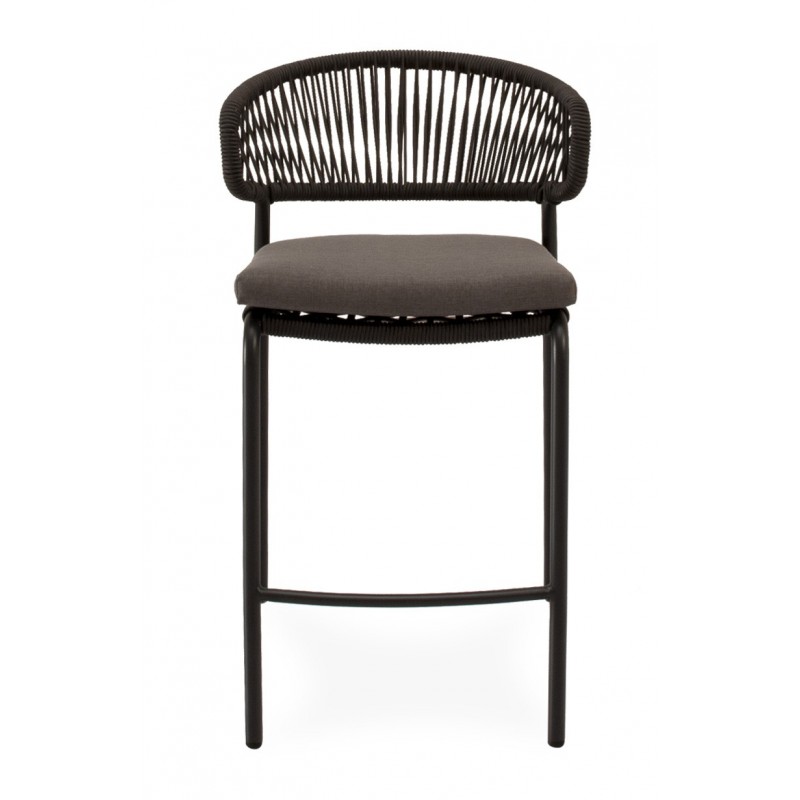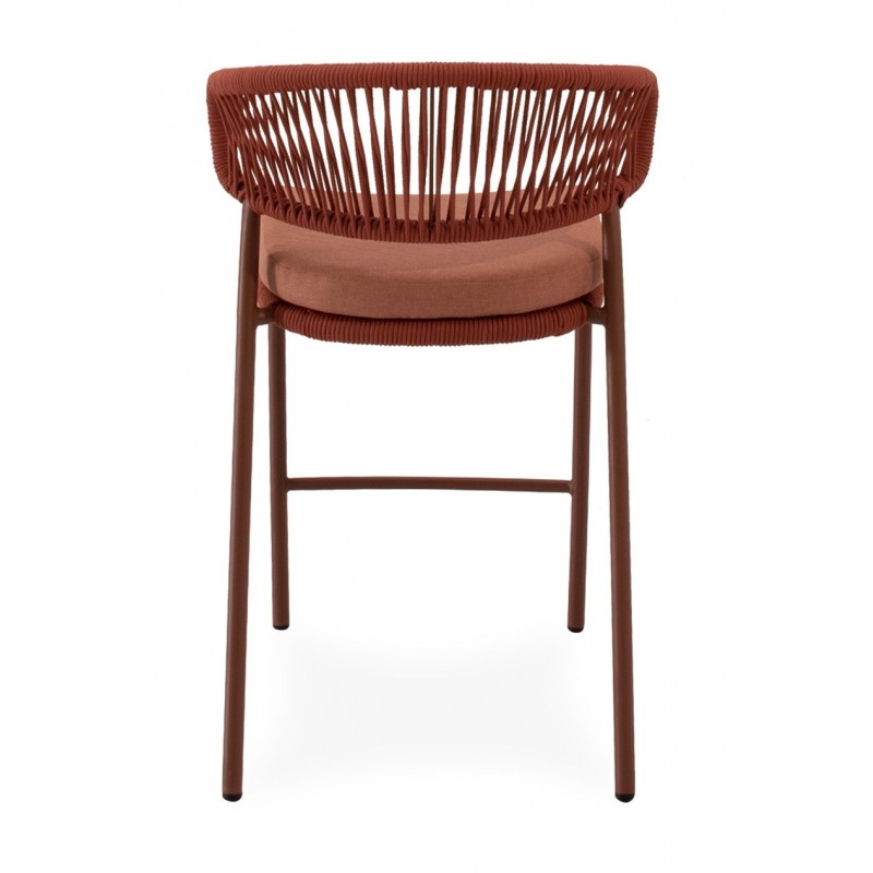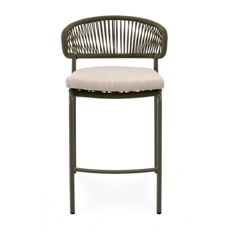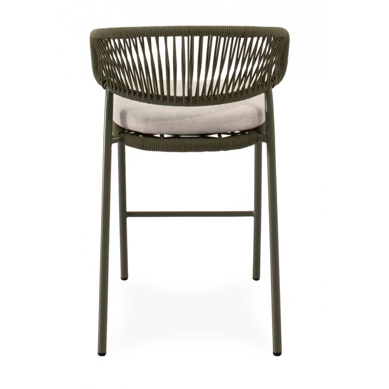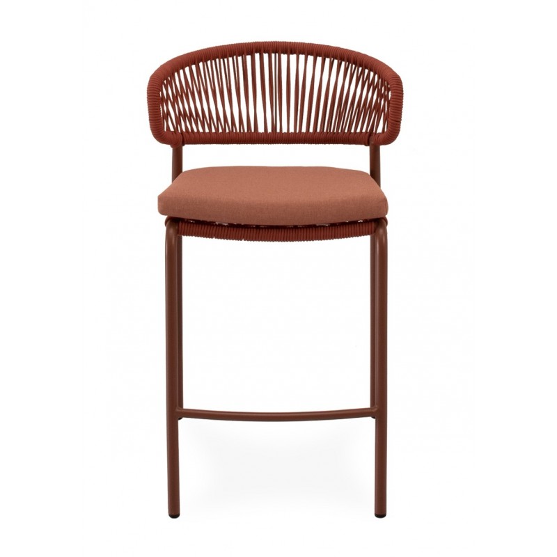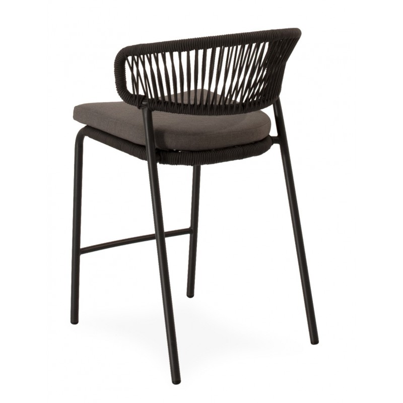 El taburete de exterior RANDALL destaca por su enfoque minimalista y elegante, con un diseño que prioriza tanto la estética como la funcionalidad. Su respaldo curvo, elaborado en cuerda sintética de alta resistencia, se eleva ligeramente separado del asiento, creando un efecto visual liviano y permitiendo una ventilación óptima.