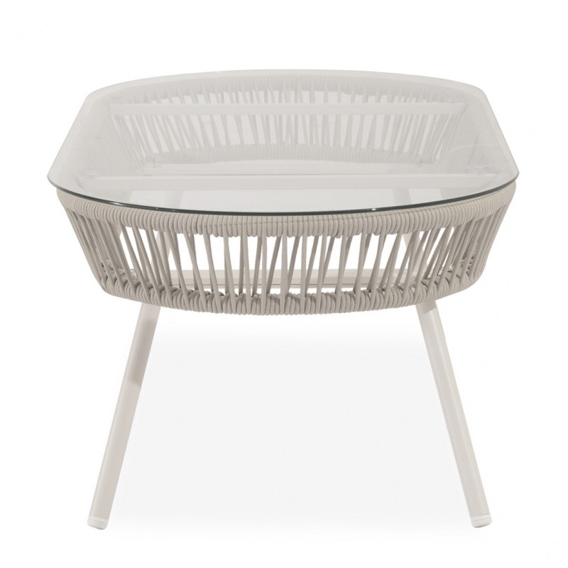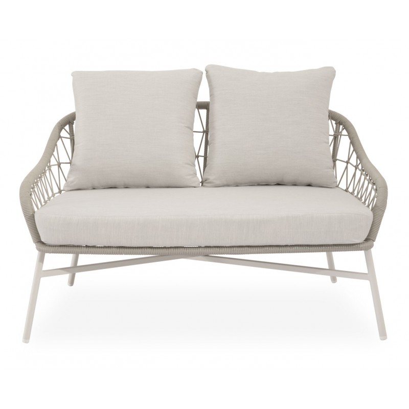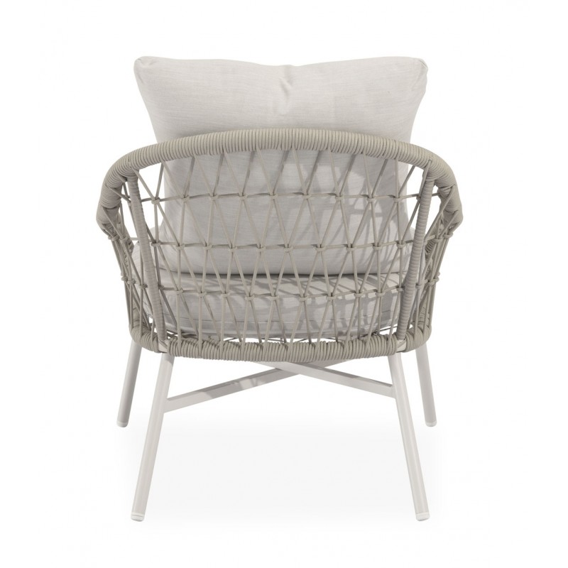El conjunto de jardín SALONICA es un conjunto de exterior compuesto por dos butacas, un sofá de dos plazas y una mesa de centro. Está diseñado para terrazas, porches o zonas exteriores donde se busca crear un espacio de descanso cómodo y visualmente ligero.