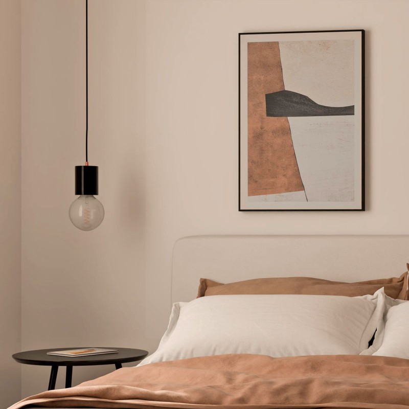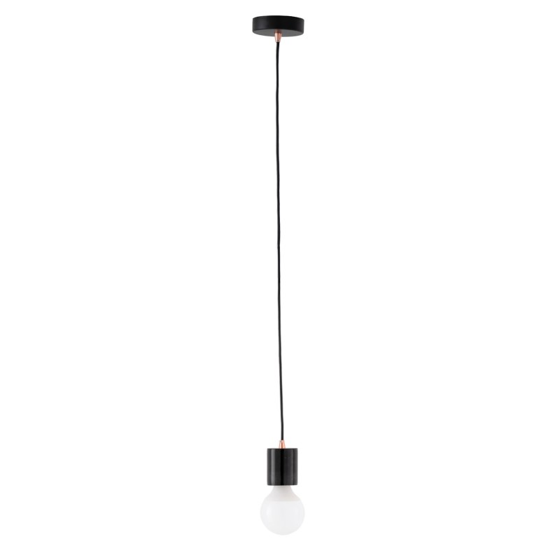 El contraste entre la piedra natural y el detalle metálico en acabado bronce añade un toque cálido y refinado, realzando su estética sin restar protagonismo al entorno. El cable y el florón combinan con el color de la pieza, reforzando su armonía visual.
