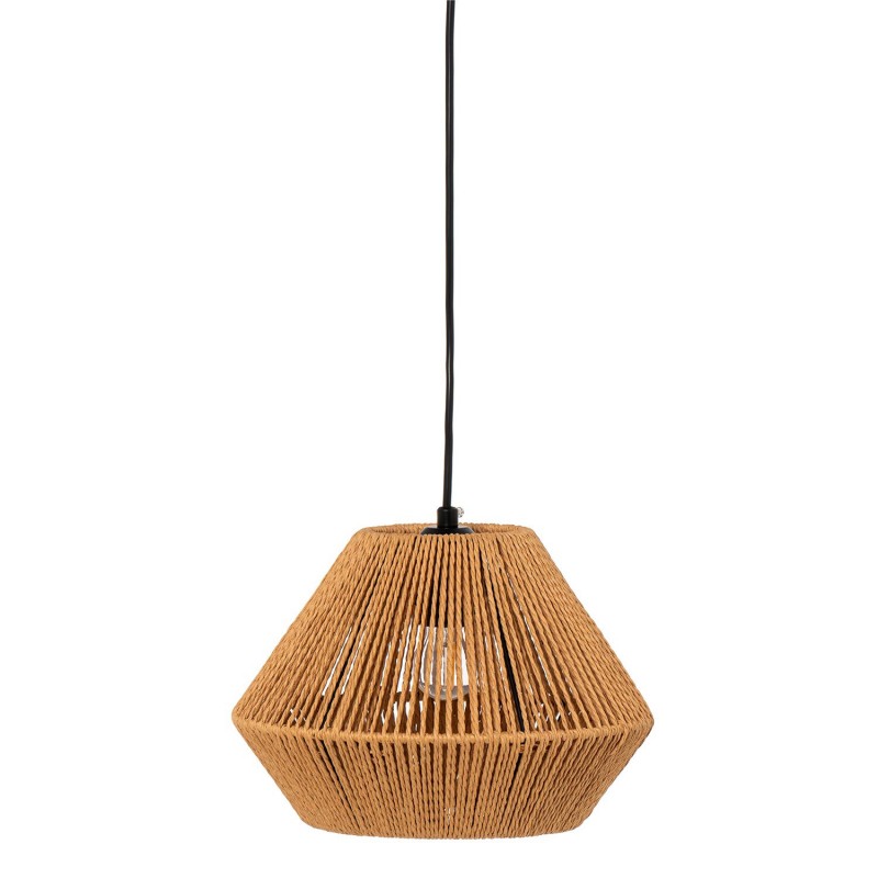 La lámpara de techo LLAURI destaca por su diseño sencillo y equilibrado, con una pantalla tejida en cuerda de cáñamo sobre estructura metálica. Su silueta geométrica y su acabado cálido la convierten en una opción versátil para múltiples espacios.