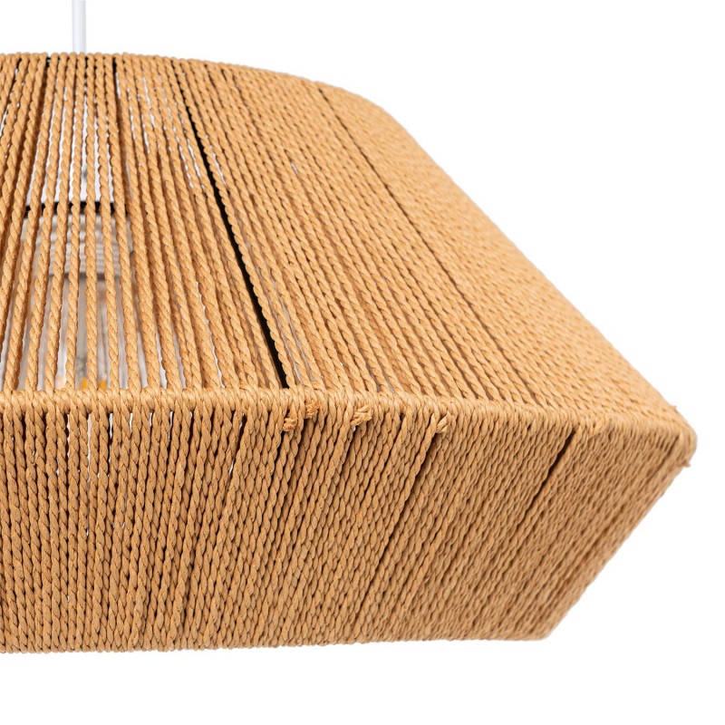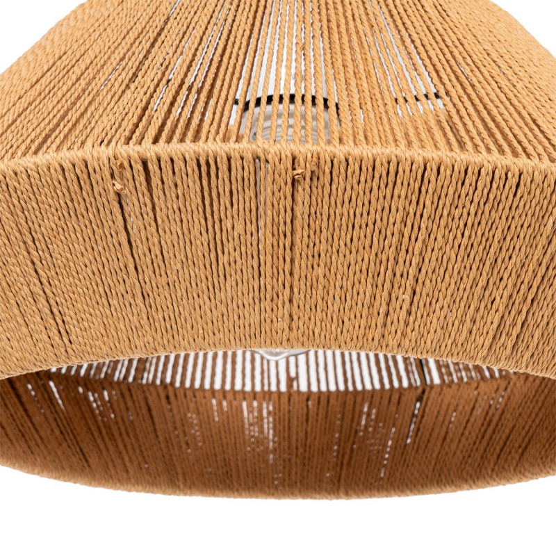 El trenzado de la cuerda genera un interesante juego de luces y sombras, reforzando su valor decorativo más allá de su función como luminaria.
