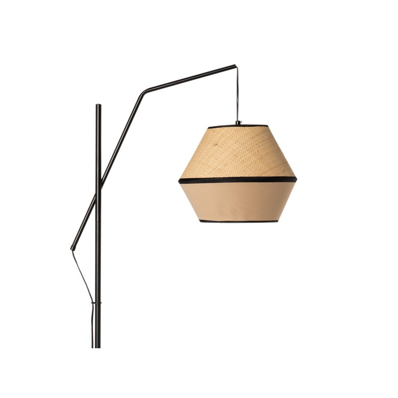 • Materiales: estructura de metal negro, pantalla de tela y fibra natural trenzada