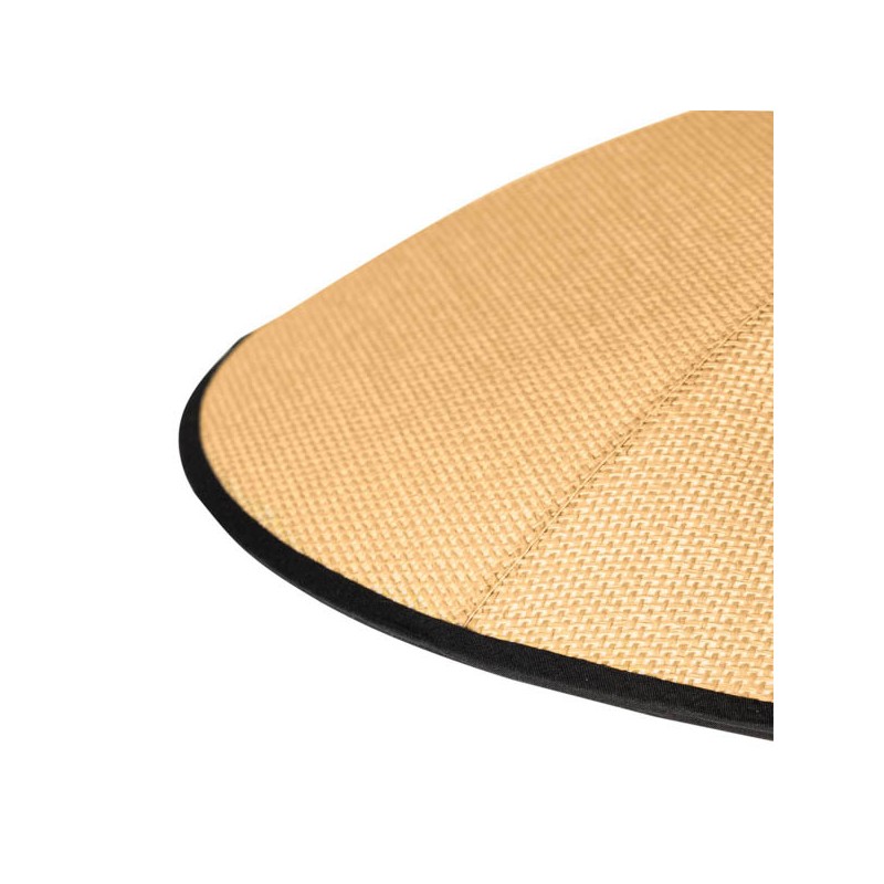 Los ribetes en tela negra rematan el conjunto, aportando un sutil contraste que enmarca la forma con precisión estética.