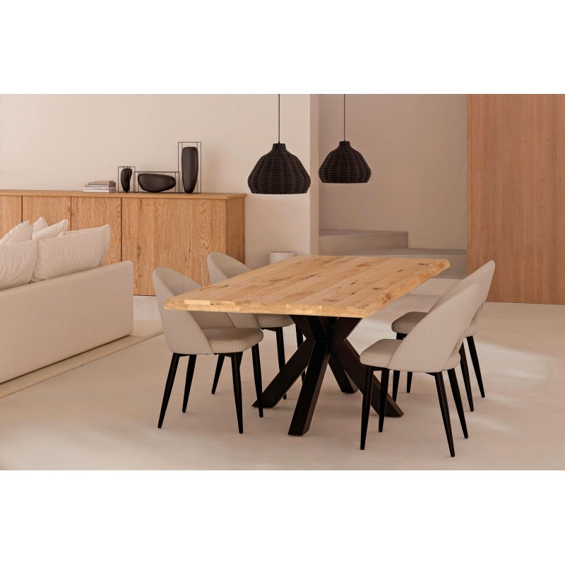 La lámpara de techo SERRA es una fusión perfecta entre materiales naturales y diseño contemporáneo. Su pantalla, de formas orgánicas y tejida en ratán, aporta calidez visual, mientras que los detalles metálicos introducen un toque moderno y equilibrado.