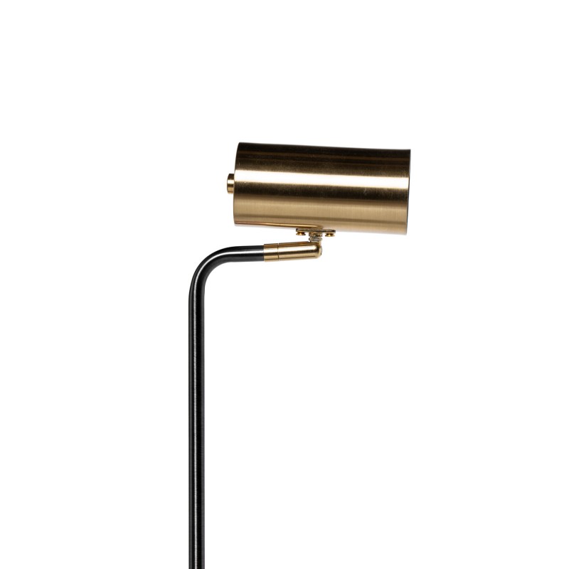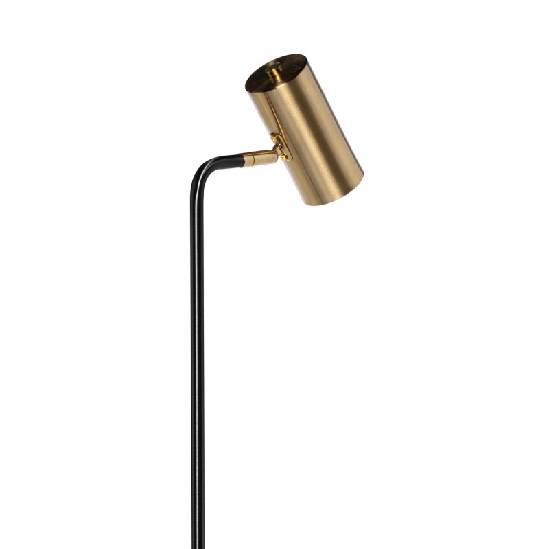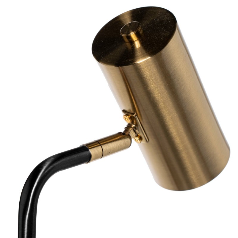 La combinación de metal negro con pantalla cilíndrica dorada crea un contraste elegante, ideal para ambientes modernos con toques sofisticados.
