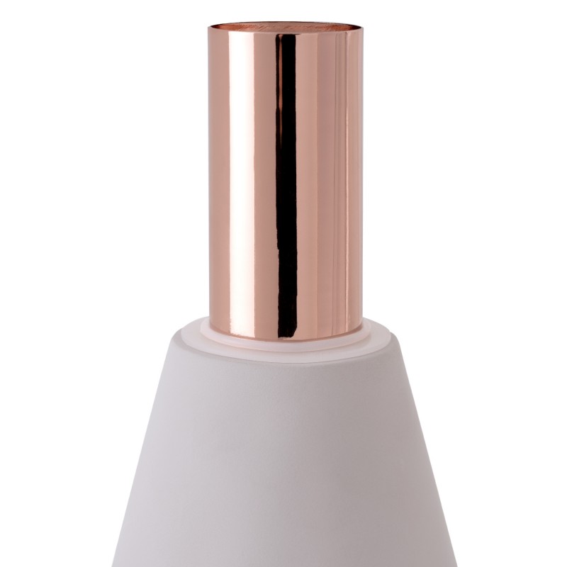 El elemento metálico en acabado cobre que conecta ambas partes añade un toque sofisticado y cálido, actuando como un punto focal elegante dentro del diseño. Este detalle aporta brillo y eleva visualmente la pieza.