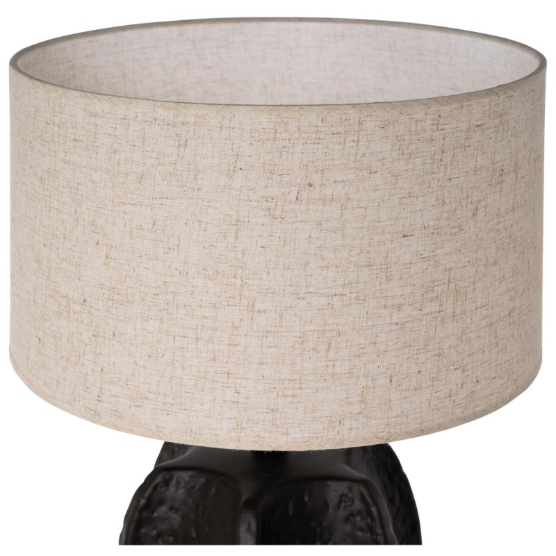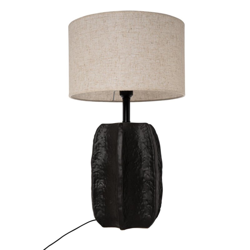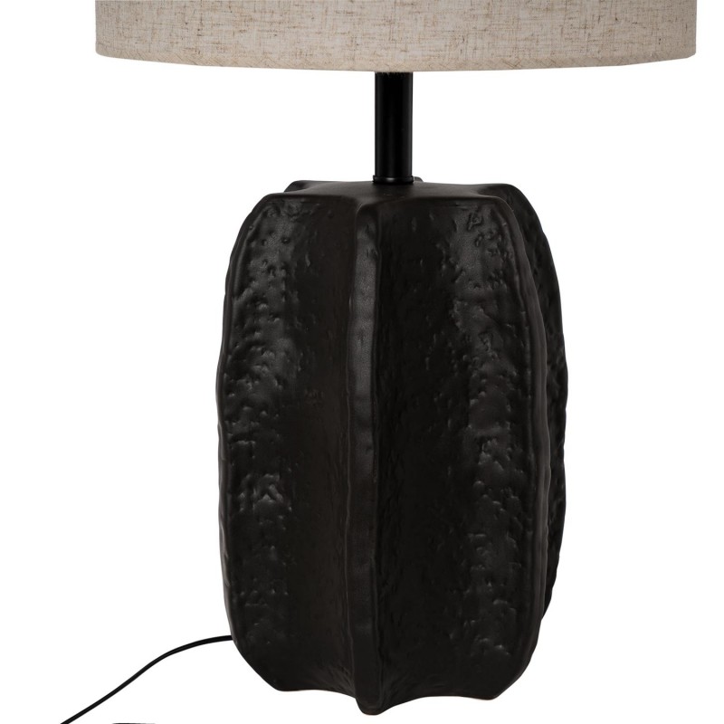 • Materiales: base de cerámica negra con textura y pantalla de tela beige