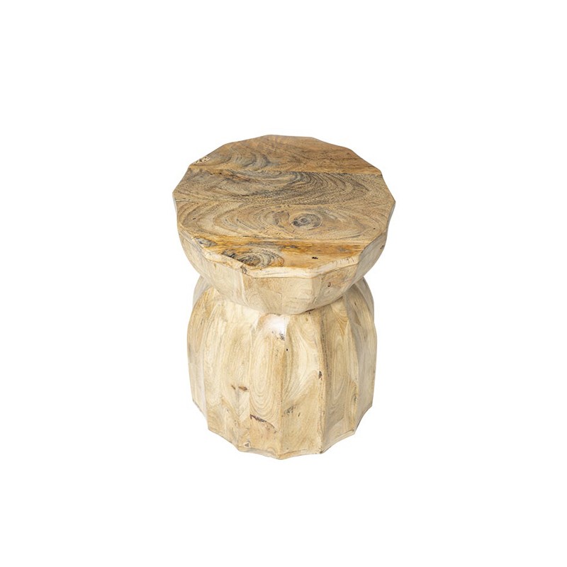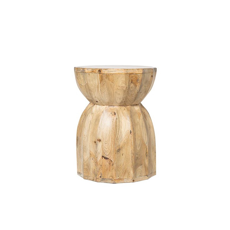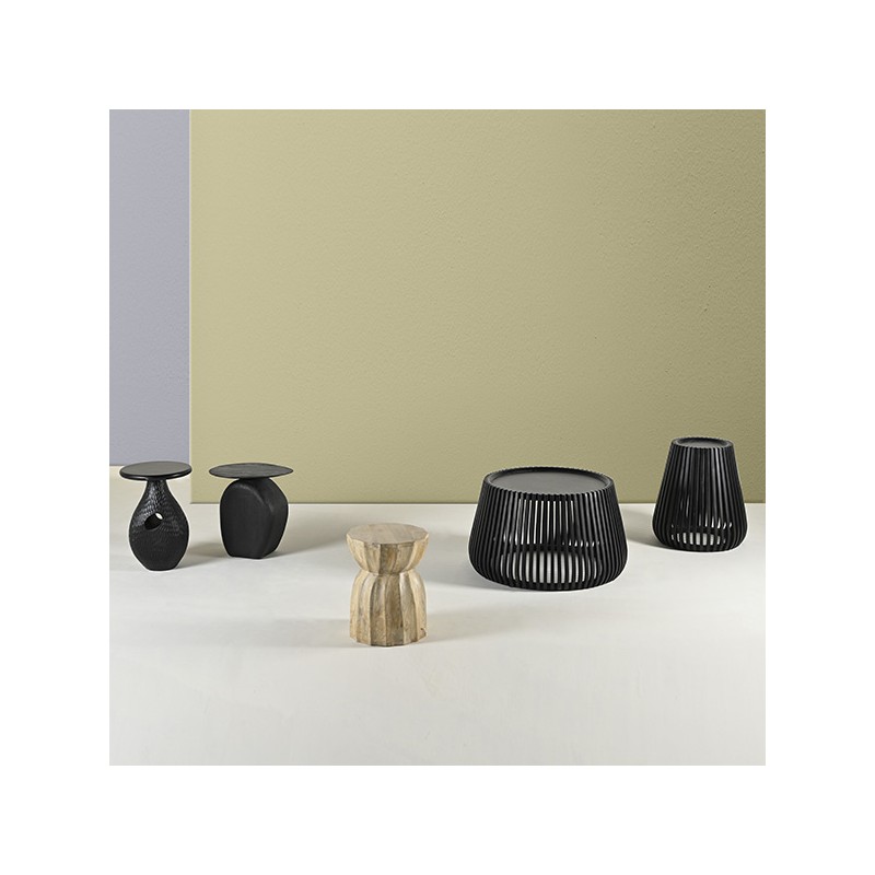 Su formato compacto y escultural permite utilizarla como apoyo decorativo junto a un sofá, como mesita de noche o incluso como pedestal para plantas o arte. Una pieza funcional que aporta textura y personalidad a cualquier espacio.