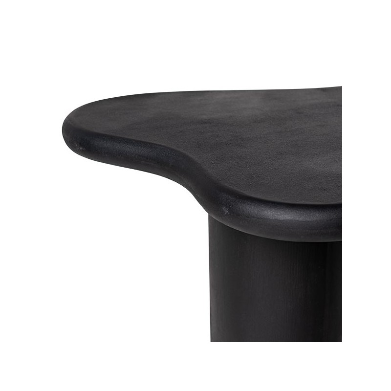 Esta mesita está fabricada con madera de mango. Se trata de un acabado artesanal, hecho completamente a mano, cuya superficie presenta cierta rugosidad y porosidad, con imperfecciones (no se trata de una superficie lisa).