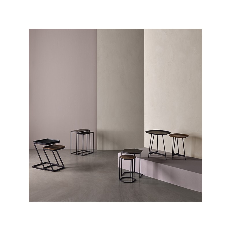 El set de mesas auxiliares AMIR de estilo indio combina un diseño artesanal con una elegancia contemporánea que realza cualquier rincón del hogar. Cada mesa cuenta con una tapa de aluminio texturizado, cuyos acabados reflejan el carácter único de una pieza hecha a mano.