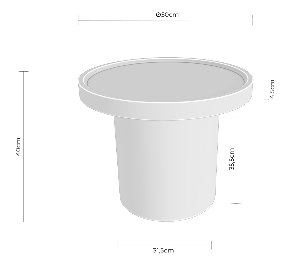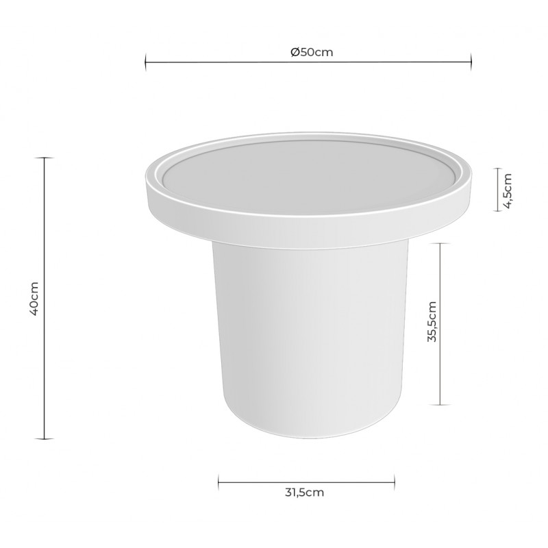 La mesa auxiliar WARREN 50 permite colocar una lámpara de sobremesa, apoyar libros o revistas junto al sofá, dejar una taza de café o utilizarla como mesilla de noche en dormitorios actuales. Su diámetro de 50 cm ofrece superficie suficiente sin invadir zonas de paso, lo que la hace compatible con salones de tamaño reducido.