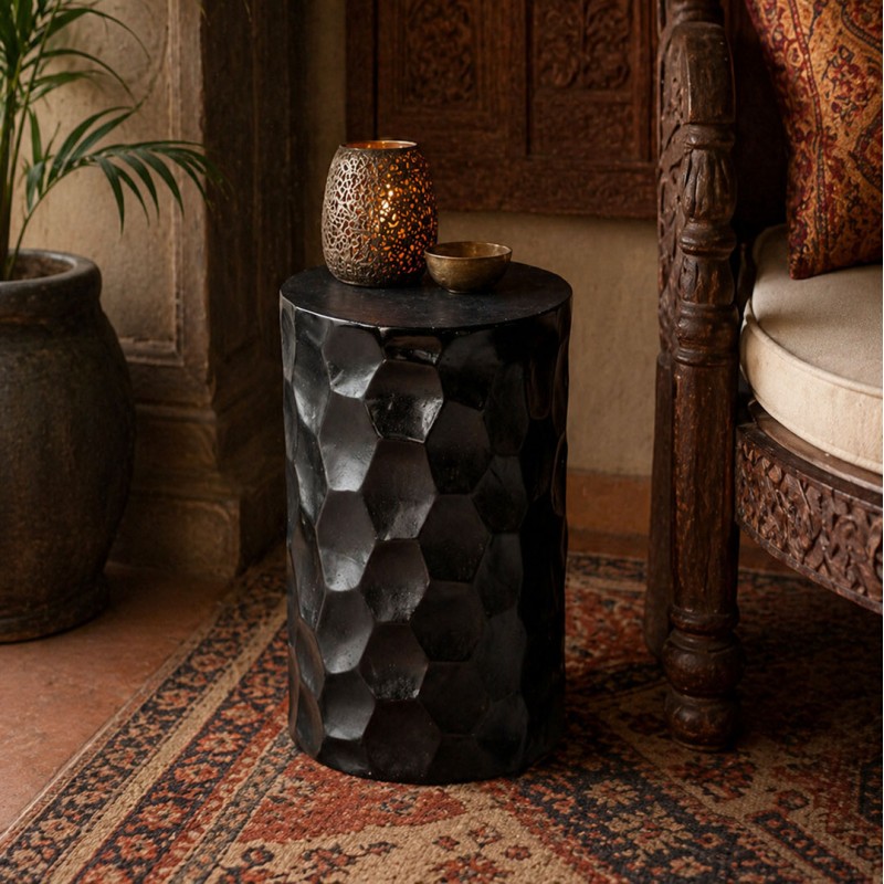 La mesa auxiliar DURASH puede utilizarse como soporte para lámparas, libros o bebidas, así como mesa de noche en dormitorios compactos. Su estructura metálica ofrece mayor durabilidad frente a opciones en madera ligera, y su superficie admite un uso frecuente con bajo mantenimiento. Funciona bien en estancias a partir de 8 m², combinando con sofás de líneas simples o mobiliario contemporáneo. La textura irregular aporta carácter visual sin requerir elementos decorativos adicionales.