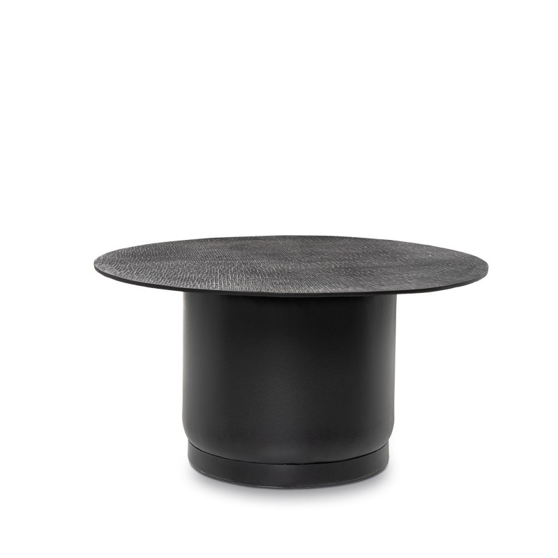 Fabricada con tapa de aluminio y base metálica, está orientada a usuarios que valoran materiales resistentes con un acabado cuidado. Encaja especialmente en salones contemporáneos o espacios de inspiración industrial donde se priorizan formas simples y materiales sólidos.