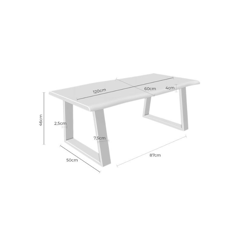 Pensada para su uso como mesa central en zonas de estar, su superficie amplia permite colocar bandejas, libros o elementos decorativos. El tablero de madera de acacia presenta vetas marcadas y acabados únicos que aportan calidez y textura.