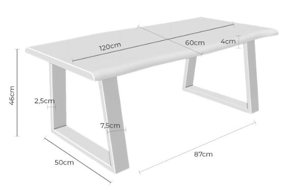 • Dimensiones: ancho 120 cm / fondo 60 cm / alto 46 cm