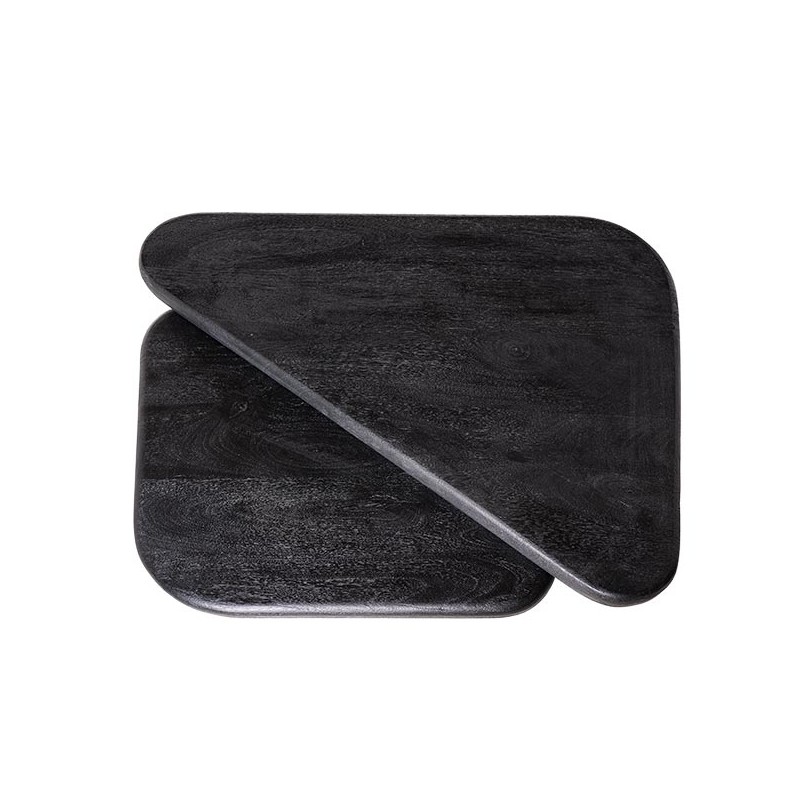 El uso de madera de mango, conocida por su resistencia y textura expresiva, aporta autenticidad a cada pieza. Las superficies muestran ligeras irregularidades propias de su fabricación artesanal, reforzando el carácter único del conjunto.