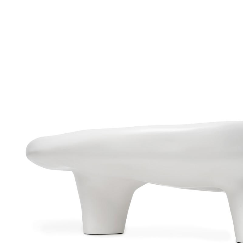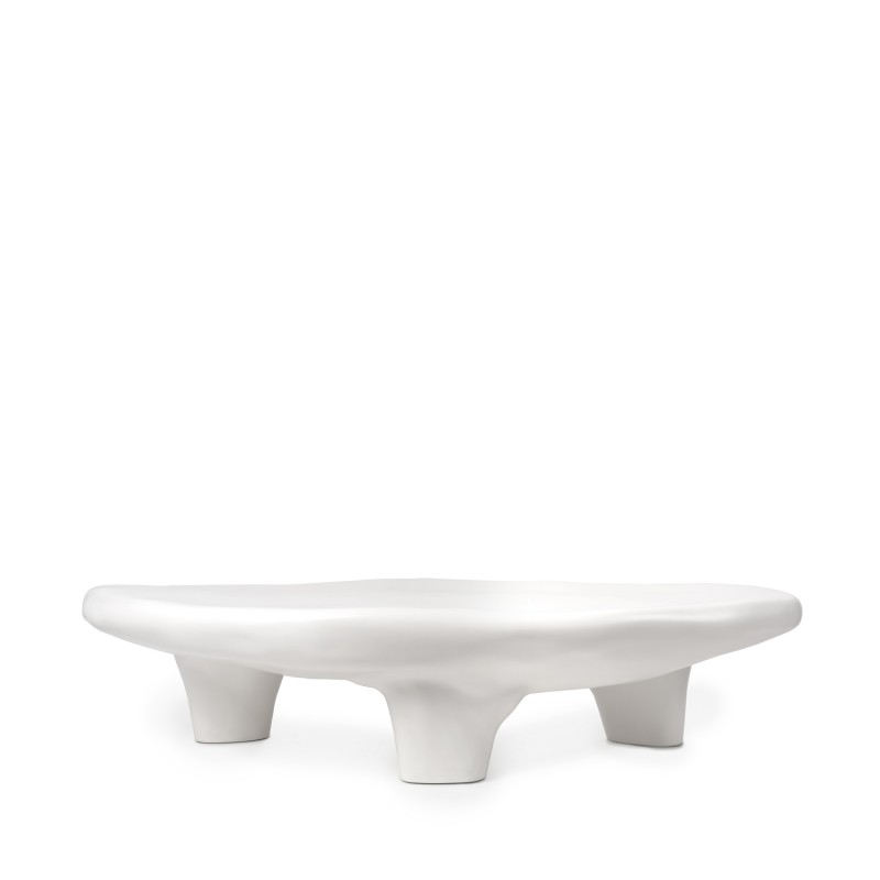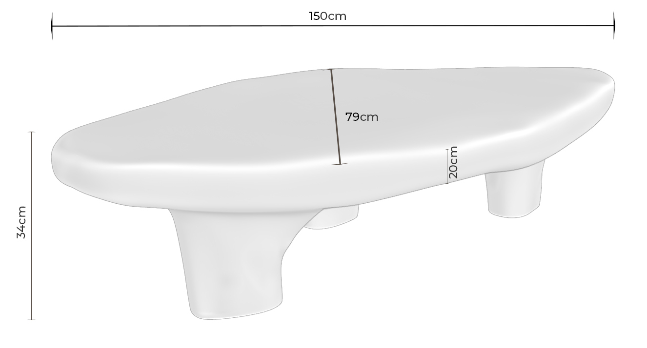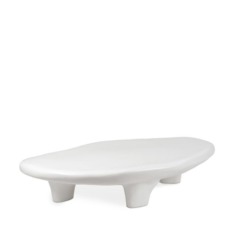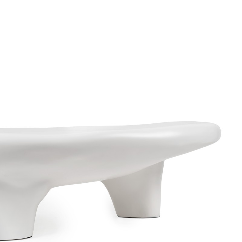 La construcción en resina ofrece una superficie continua y resistente al uso cotidiano, con mayor uniformidad estructural que muchas mesas fabricadas en paneles ensamblados. Su altura baja la hace adecuada para salones relajados de estilo contemporáneo u orgánico, donde se busca una mesa funcional que también actúe como pieza escultórica. No requiere montaje y puede integrarse fácilmente en espacios con mobiliario minimalista o de líneas suaves.