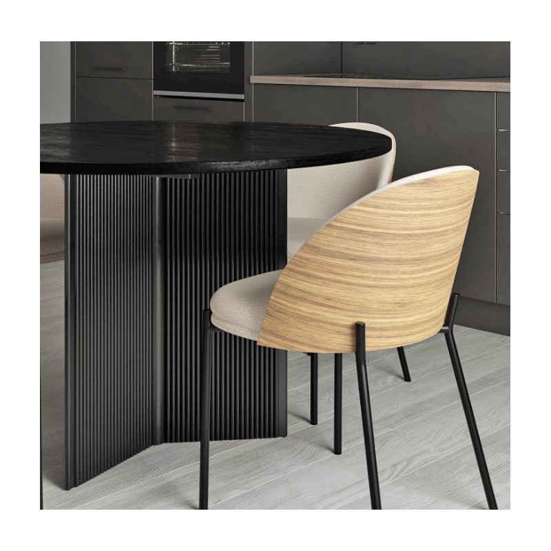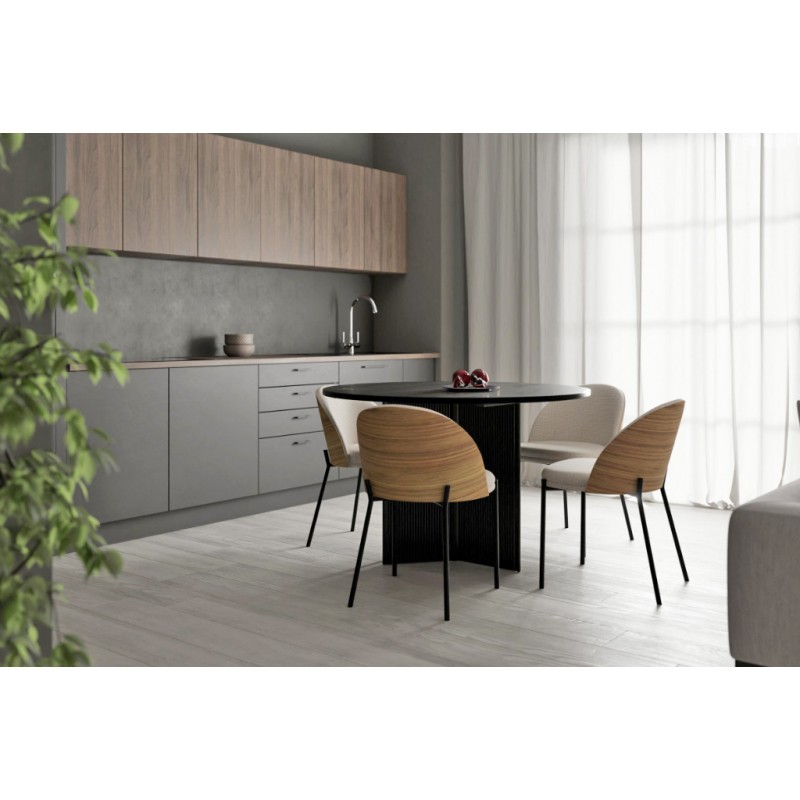 La mesa de comedor FARIS de 120 cm es una declaración de estilo que equilibra elegancia contemporánea y carácter escultórico. Su diseño redondo favorece la fluidez del espacio, creando un ambiente acogedor y sofisticado en cualquier comedor.