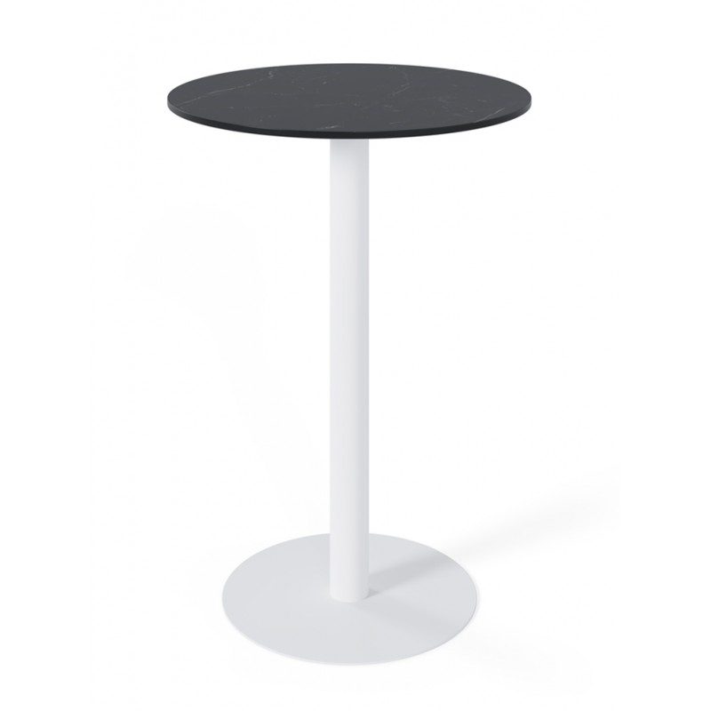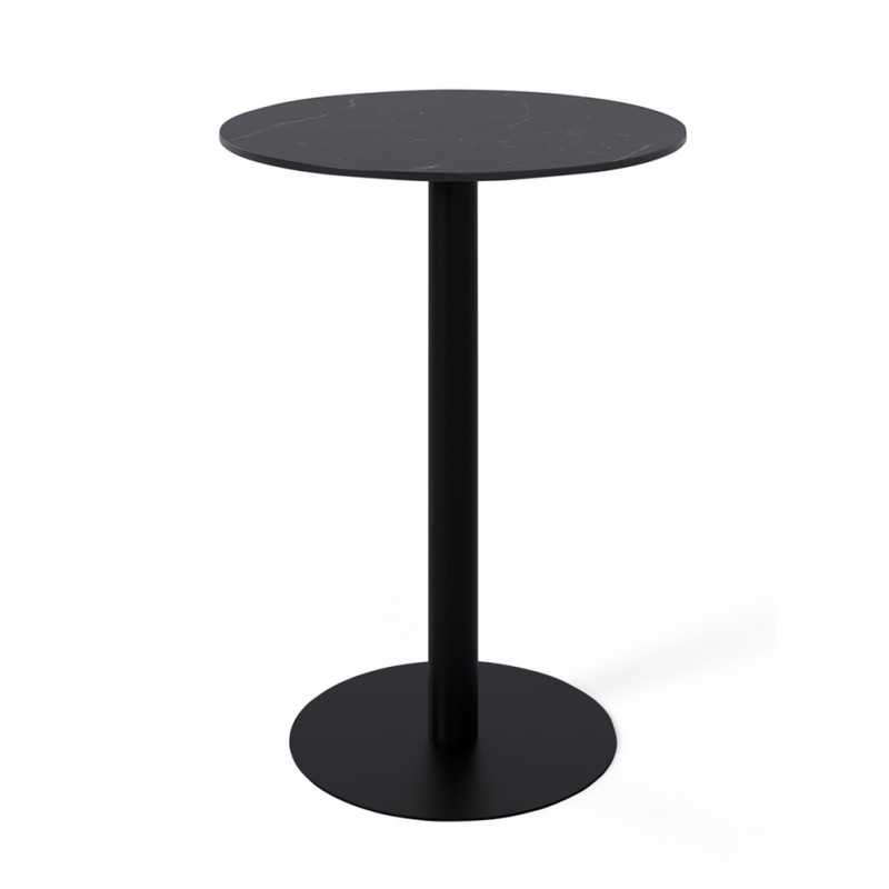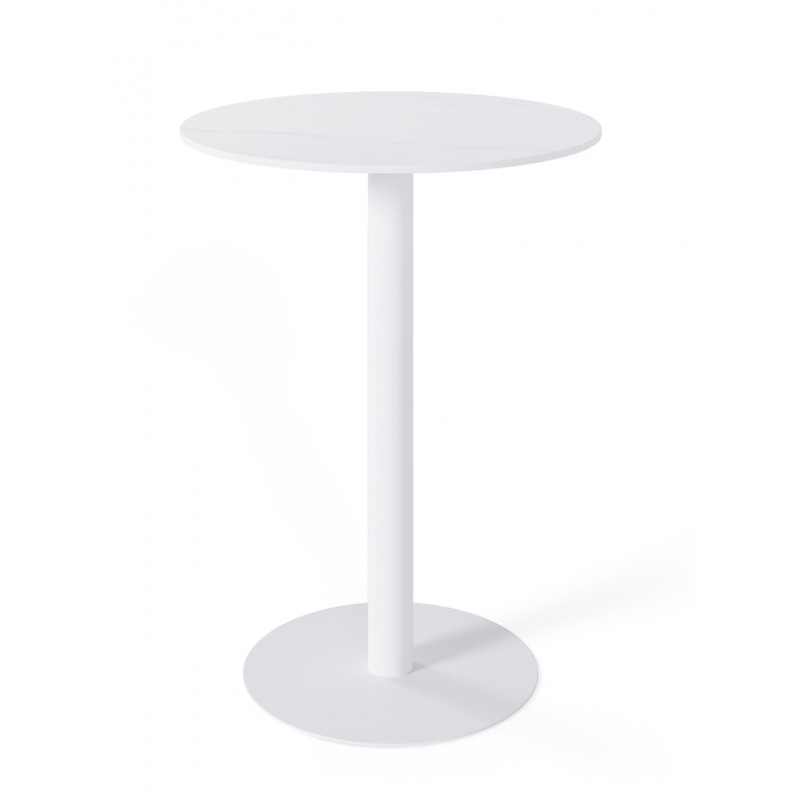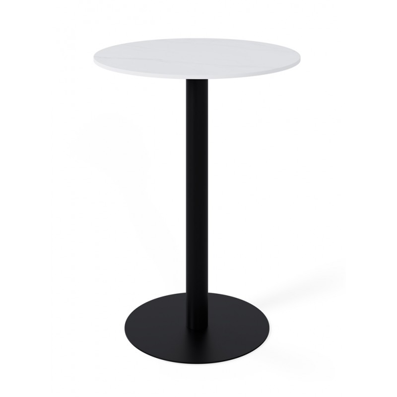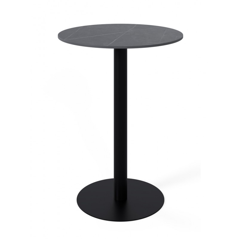 La mesa alta LYA es una mesa alta de formato compacto con tapa de porcelánico y base de metal, diseñada para zonas de barra, cocinas abiertas o espacios de reunión informales.
