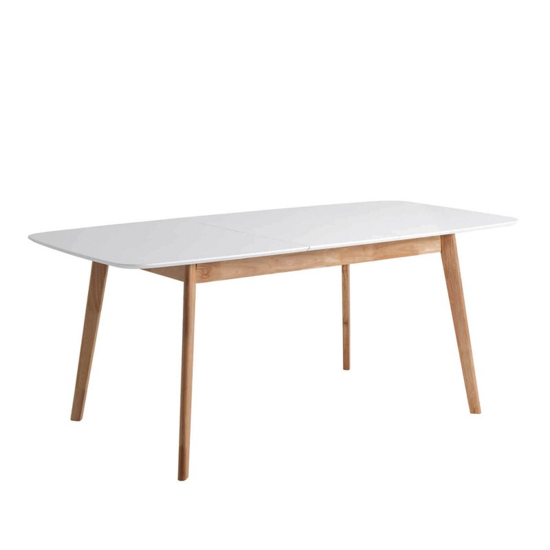 Gracias a su sistema extensible tipo libro, permite pasar de un uso diario compacto a una superficie más amplia para comidas familiares, reuniones o invitados ocasionales. Su formato rectangular facilita la colocación junto a paredes o en el centro del comedor, manteniendo buena circulación en la estancia. Frente a mesas fijas, ofrece mayor flexibilidad sin necesidad de añadir piezas externas. Las patas de madera de roble aportan estabilidad en el uso diario, mientras que la tapa lacada resulta fácil de limpiar. Encaja con sillas de comedor estándar y en ambientes de estilo contemporáneo o nórdico.