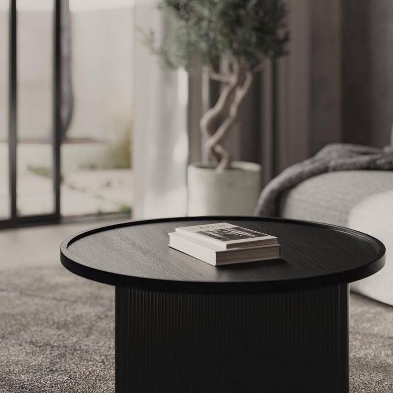 La mesa de centro FARIS se impone con una presencia escultural que fusiona diseño contemporáneo y elegancia atemporal. Con un diámetro de 80 cm, es perfecta para crear un punto focal en salones modernos, industriales o de estilo minimalista.