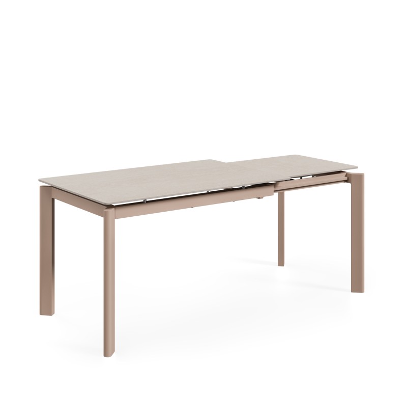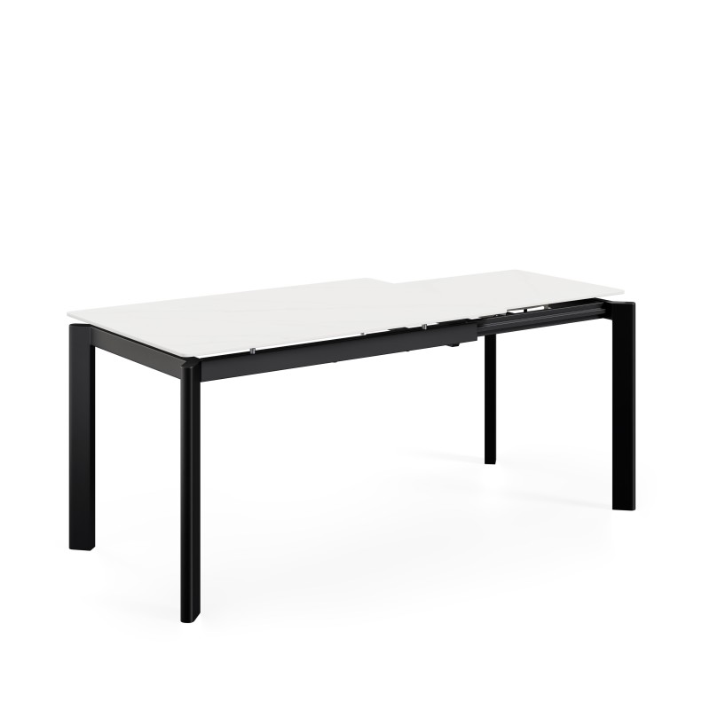 Pensada para quienes necesitan adaptar el espacio según la ocasión, ofrece una solución práctica para el día a día y para reuniones puntuales. En su versión cerrada resulta compacta; extendida, permite ganar longitud de forma rápida gracias a su sistema lateral giratorio.