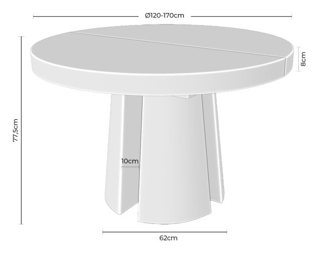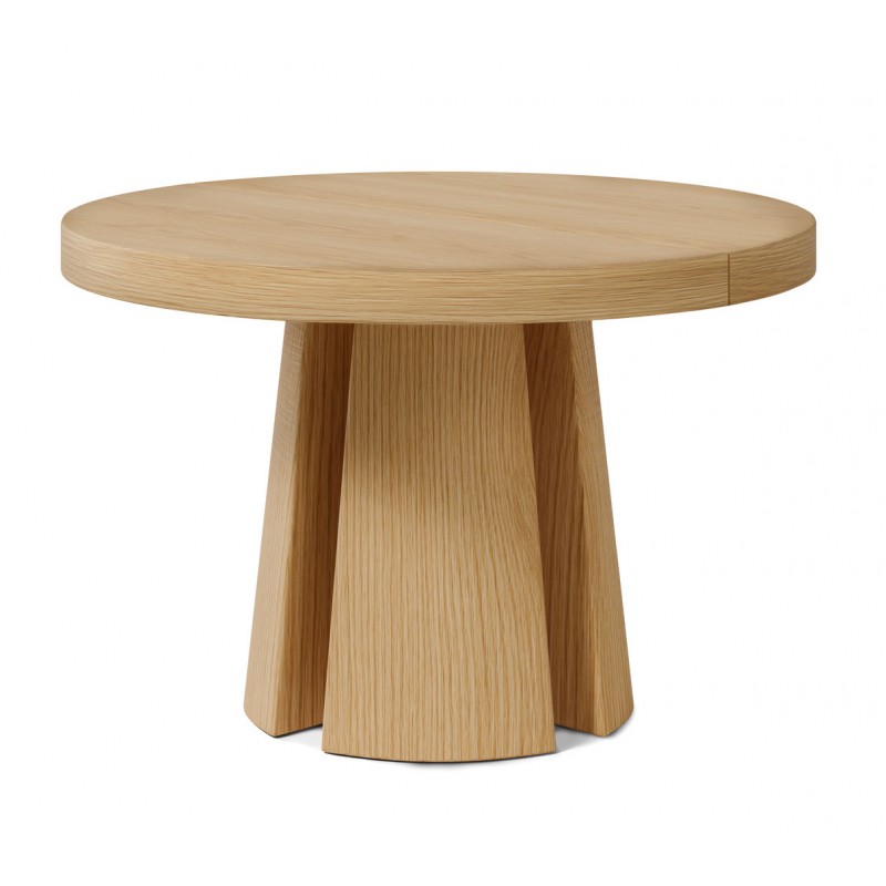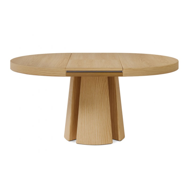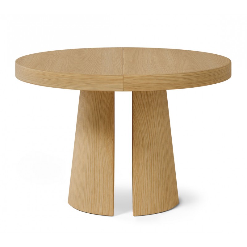 La mesa de comedor MARCELLA es una mesa redonda extensible diseñada para comedores que buscan combinar funcionalidad y una estética contemporánea en madera natural. Su diámetro de 120 cm permite un uso cómodo en comidas diarias, mientras que su sistema extensible amplía la superficie hasta 170 cm cuando se necesitan más plazas.