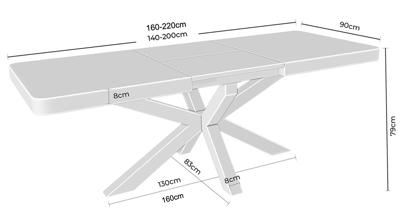 - Ancho: 140 cm (extensible a 200 cm) / 160 cm (extensible a 220 cm)