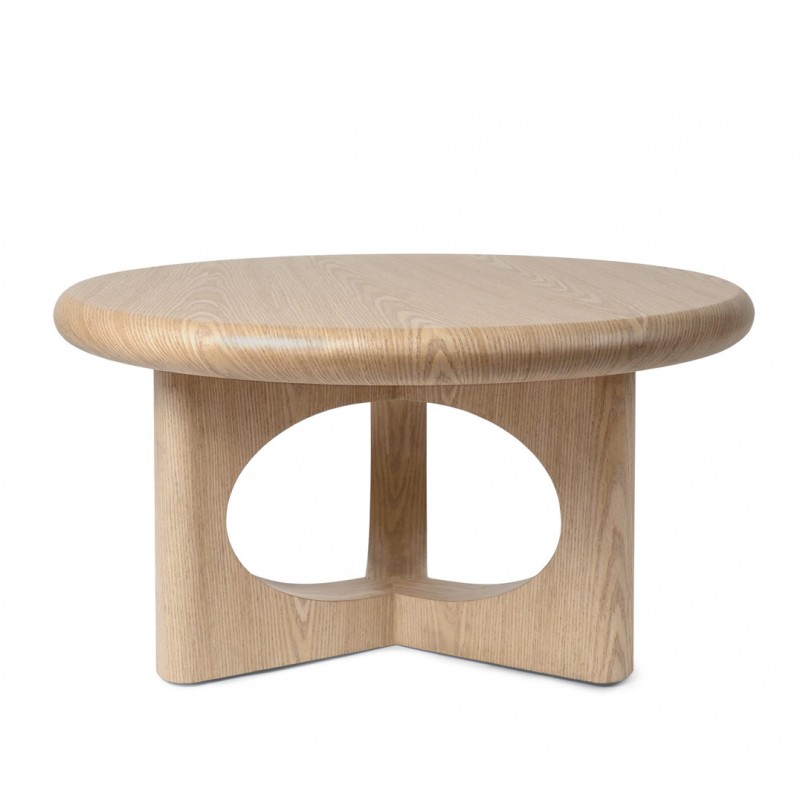El diseño de la mesa de centro ARNAUD 80 combina una base geométrica con abertura circular y una pata cilíndrica frontal, generando una pieza con carácter escultórico. Está orientada a usuarios que buscan una mesa de centro con presencia estética y materiales cálidos como la chapa de madera en acabado roble.