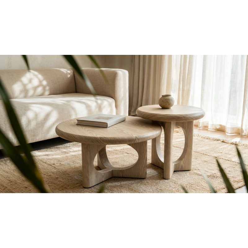 La mesa de centro ARNAUD 80 es una mesa de formato bajo y diámetro amplio pensada para salones donde se necesita una superficie funcional sin perder ligereza visual. Su tamaño de Ø80 cm la hace adecuada para zonas de estar de tamaño medio.