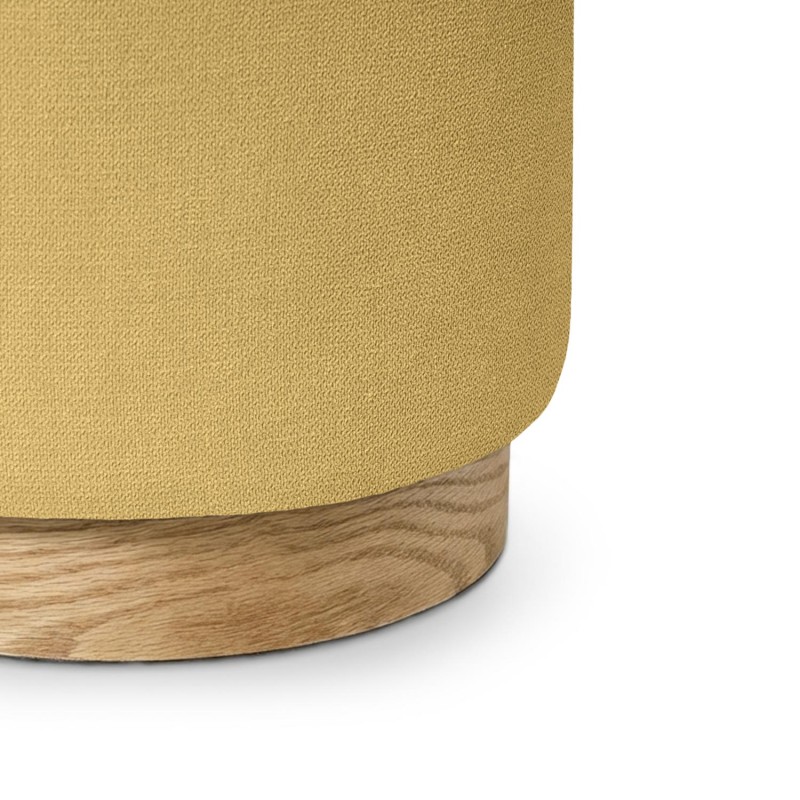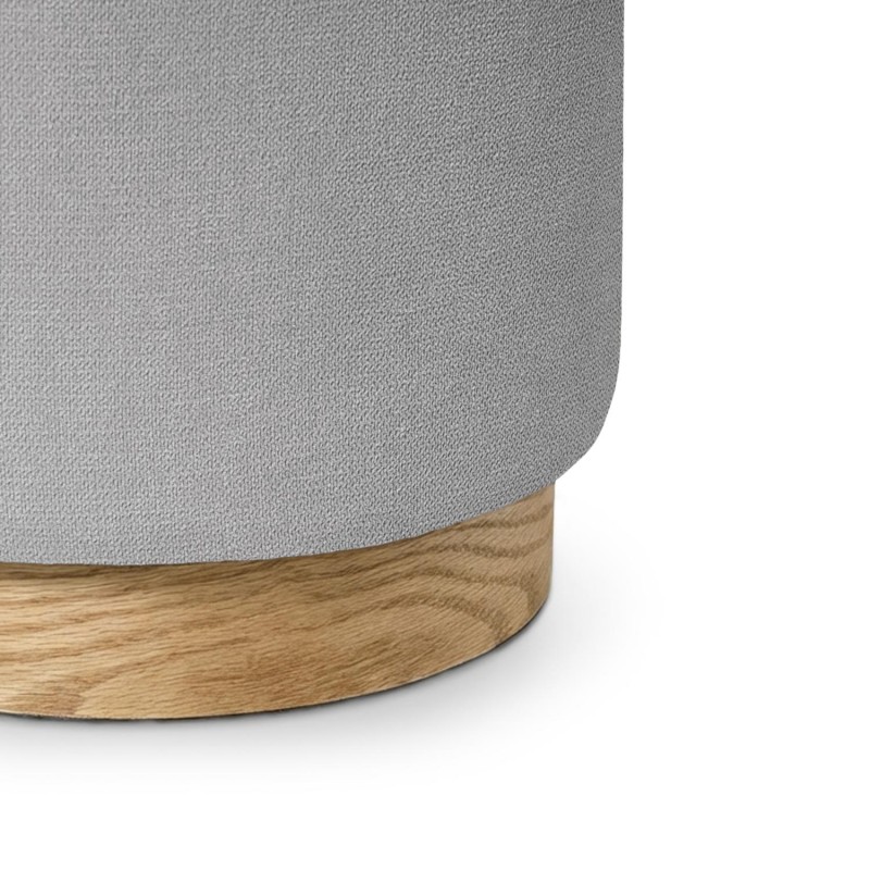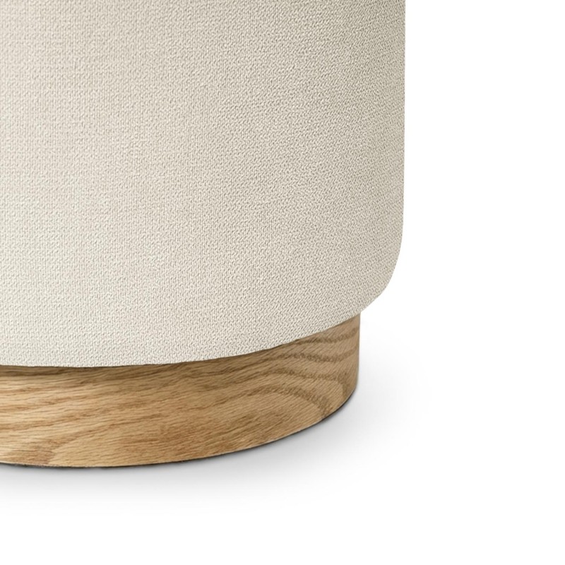 El puff ANGUS es un asiento auxiliar de forma cilíndrica con base de madera de fresno natural y tapizado en tejido antimanchas. Su diseño compacto y funcional se adapta con facilidad a salones, dormitorios o zonas de paso, ofreciendo una solución práctica sin renunciar al estilo.