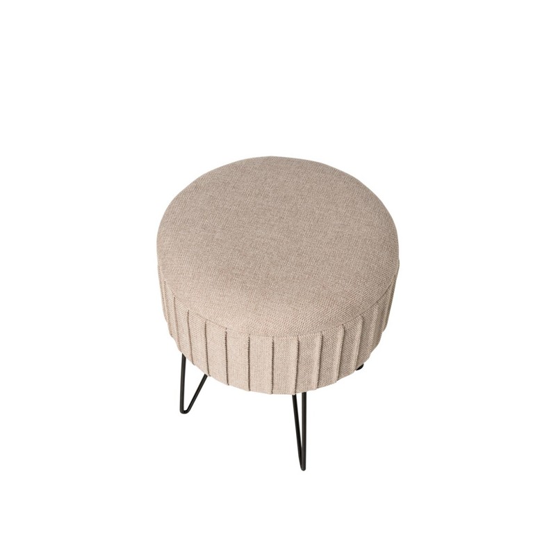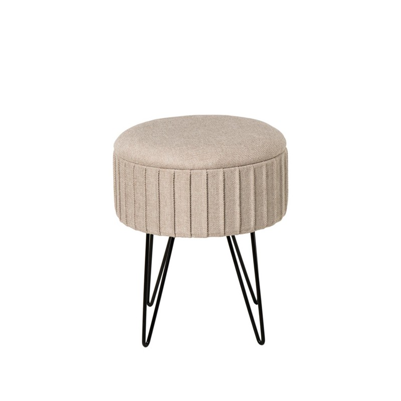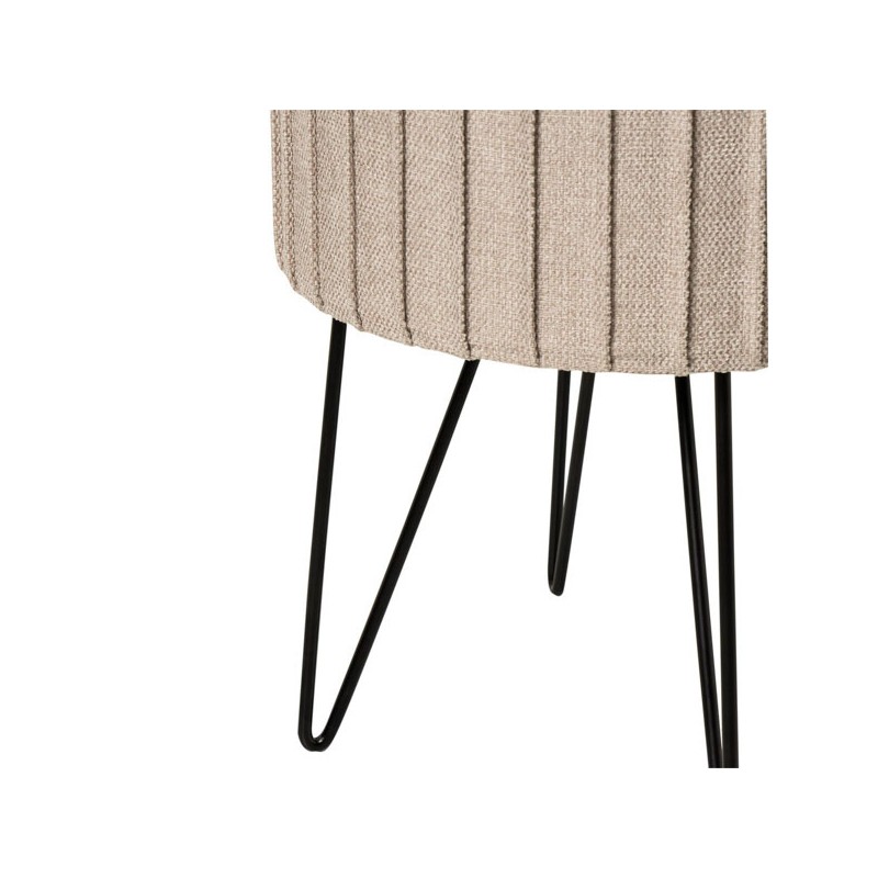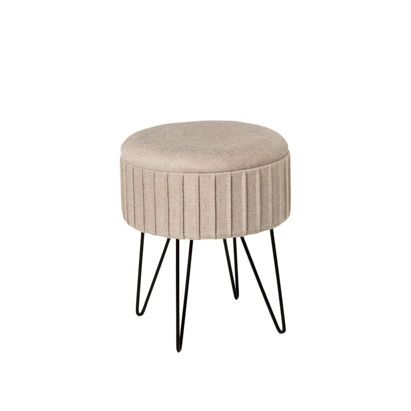 El diseño del puff ETHAN destaca por su tapizado texturizado con pliegues verticales y patas metálicas negras en forma de horquilla, lo que le aporta un aire nórdico y contemporáneo. Disponible en colores neutros y suaves como gris y menta, así como en un tono mostaza más vibrante, se adapta con facilidad a estilos escandinavos, minimalistas o modernos.