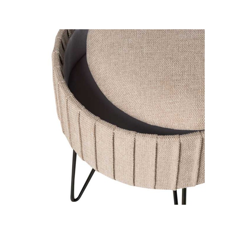 El puff ETHAN es un accesorio auxiliar compacto y funcional, diseñado para ofrecer almacenamiento adicional sin comprometer el estilo. Su estructura redonda con tapa desmontable oculta un compartimento interior ideal para mantener pequeños objetos organizados.