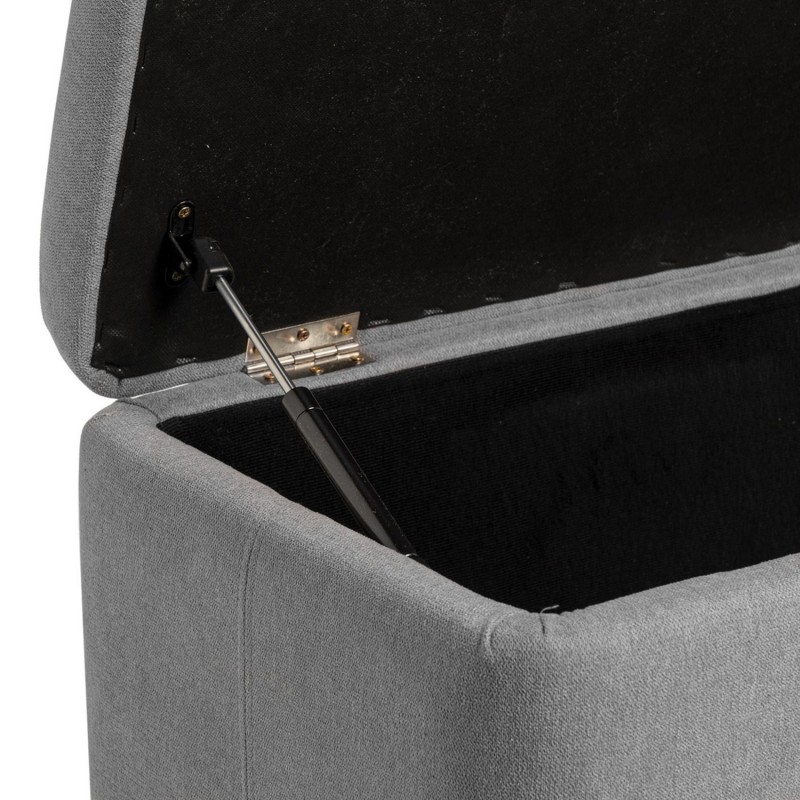 La banqueta tapizada VIENA tiene un espacio de almacenaje interior, diseñada para ofrecer asiento y organización en una sola solución. Su tapa abatible permite guardar textiles, calzado u objetos de uso cotidiano de forma discreta.