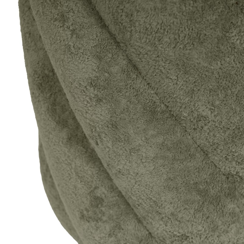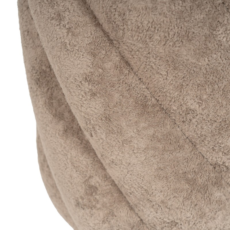 Tapizado en tejido teddy de poliéster, ofrece una textura mullida y agradable al tacto que refuerza su estética cálida y acogedora. Este material, además de ser resistente, aporta un toque actual que invita al relax.