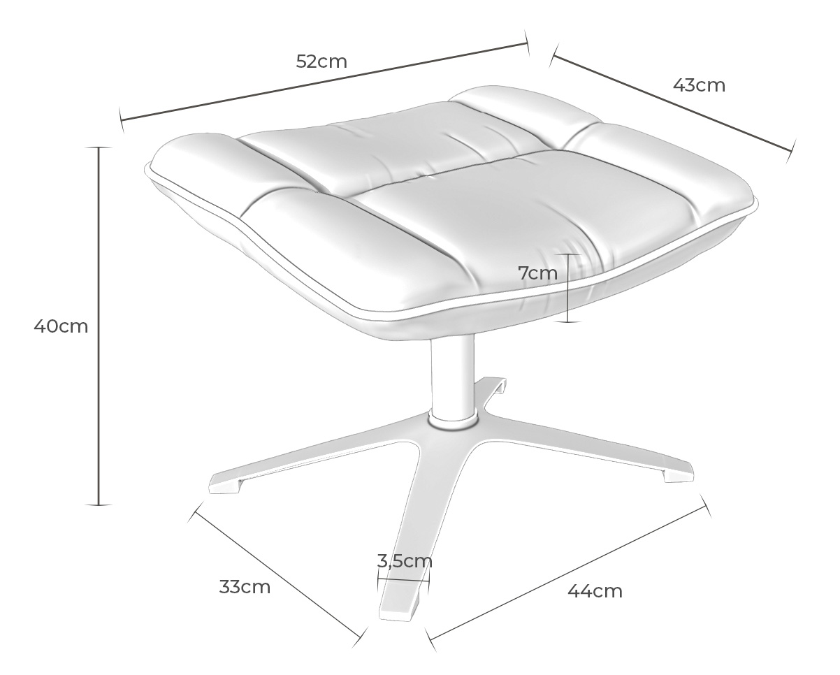 Además de servir como apoyo para las piernas, el reposapiés BOLONIA puede utilizarse como asiento auxiliar ocasional en estancias como el salón, el dormitorio o una sala de lectura. También funciona como complemento decorativo junto a una butaca reclinable.