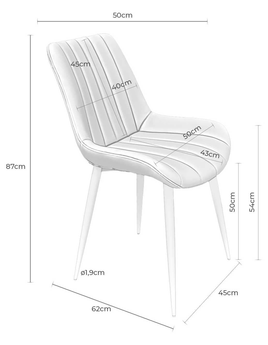 • Ancho asiento: 50 cm | Fondo asiento: 43 cm