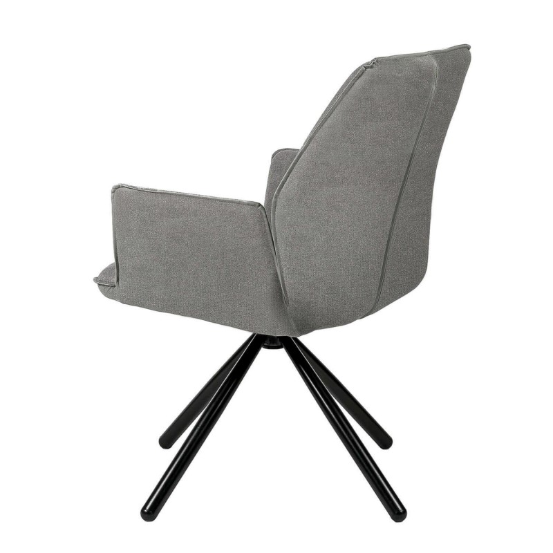 Silla giratoria con reposabrazos CARLYN tapizada en tejido 100% poliéster. Tiene una estructura metálica que le proporciona una gran resistencia y su forma la hace muy cómoda. Las patas son negras de acero.