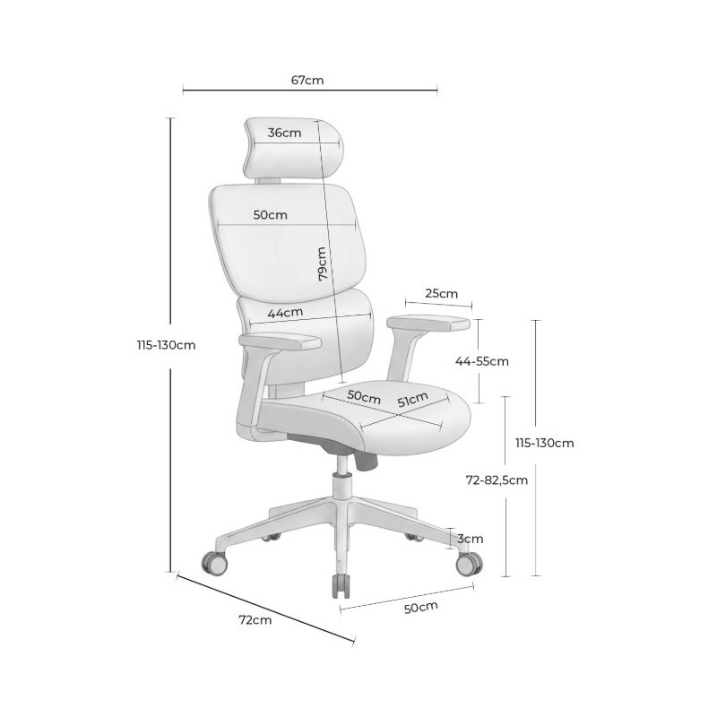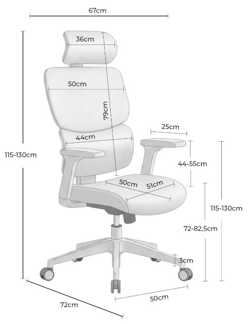 • Dimensiones (alto x ancho x fondo): 115–130 x 67 x 72 cm