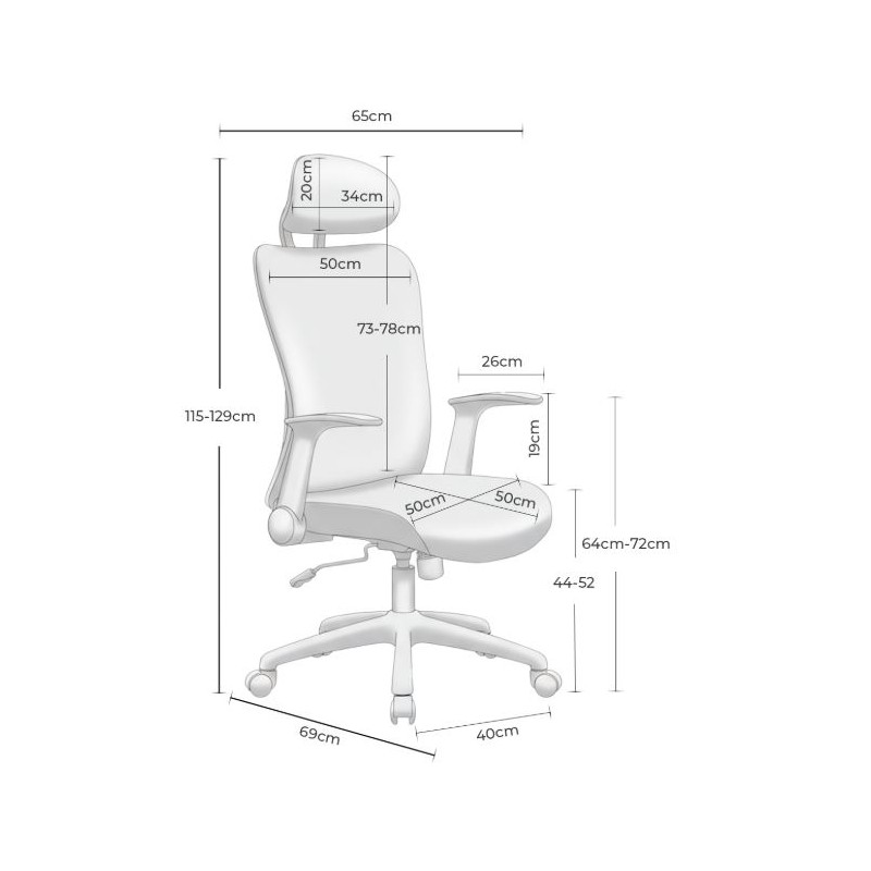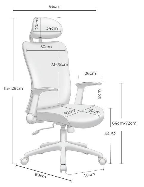 • Dimensiones (alto x ancho x fondo): 115–129 x 65 x 69 cm