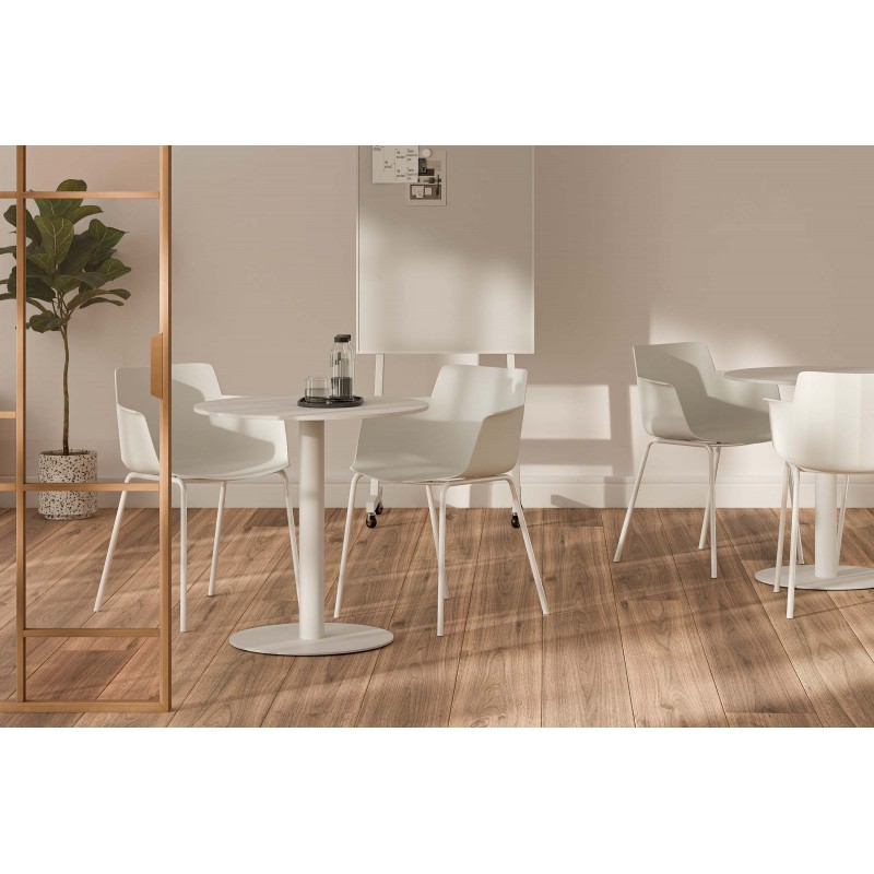 El cuerpo de polipropileno ofrece una superficie resistente al uso cotidiano y fácil de limpiar frente a sillas tapizadas que requieren mayor mantenimiento. Este material también soporta bien la humedad y las manchas habituales en cocina o comedor. Gracias a su estructura sólida, la silla DOLLY soporta hasta 150 kg y puede combinarse con mesas de comedor modernas o mesas de cocina en interiores de estilo moderno o contemporáneo.