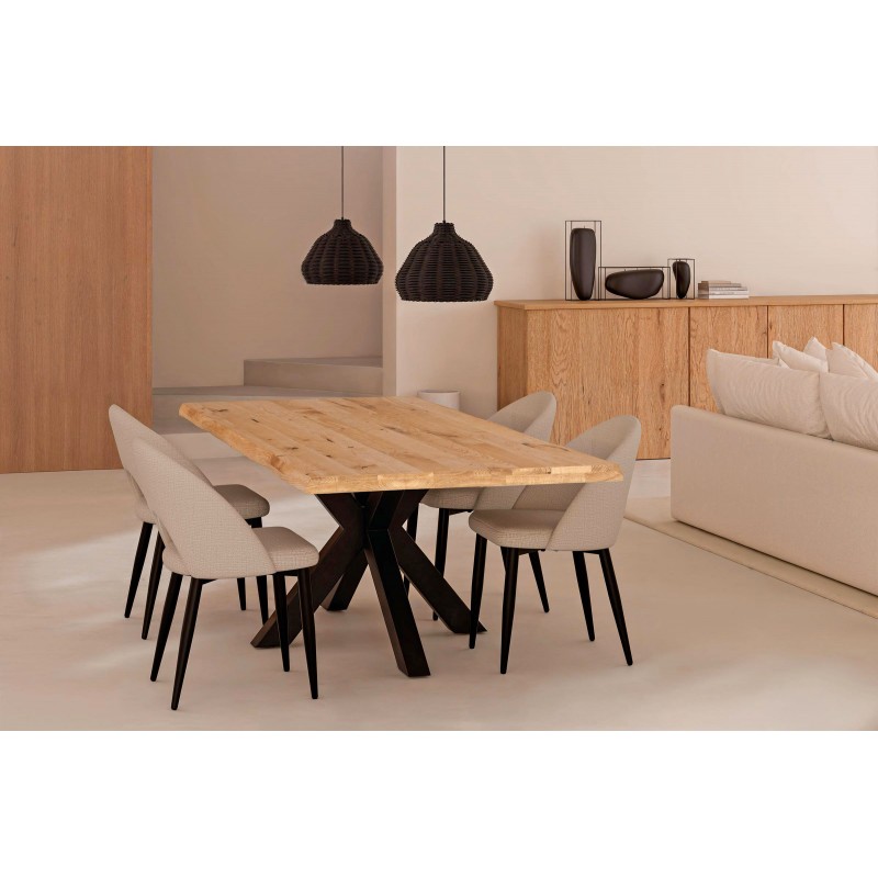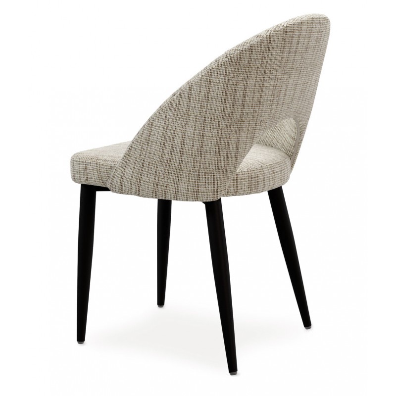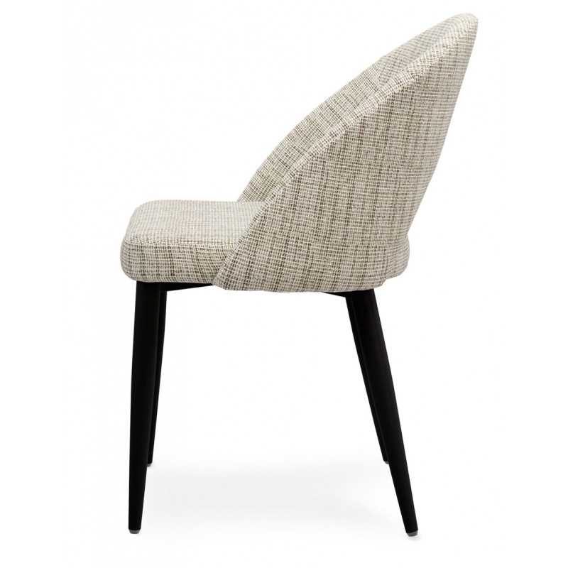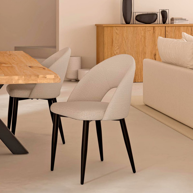 Con patas cónicas en acabado negro, la silla tapizada DORIS se adapta con facilidad a diferentes estilos decorativos, convirtiéndose en una opción versátil para cualquier ambiente que busque equilibrio entre confort y estilo.