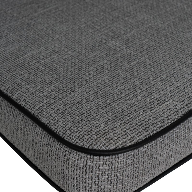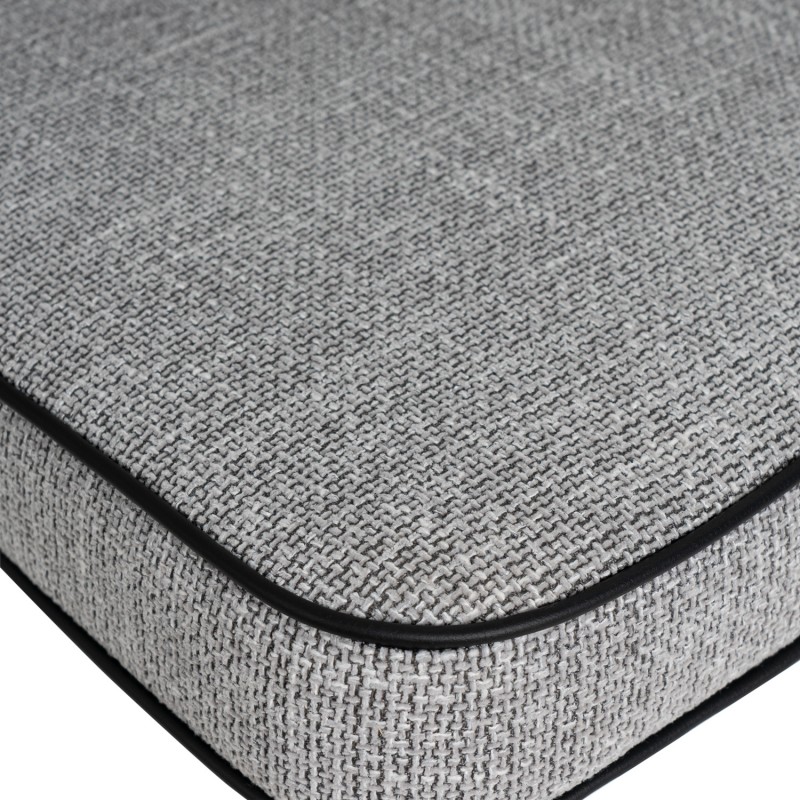 El tapizado en tejidos neutros y el detalle de la costura perimetral definen su carácter sobrio y moderno.