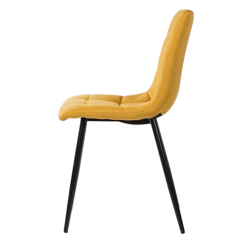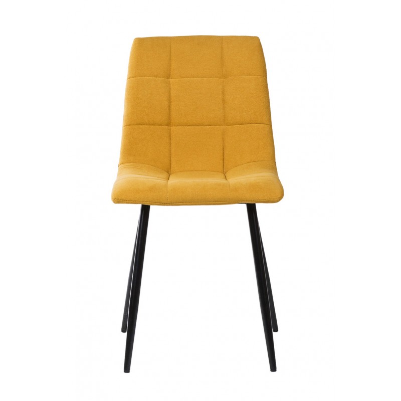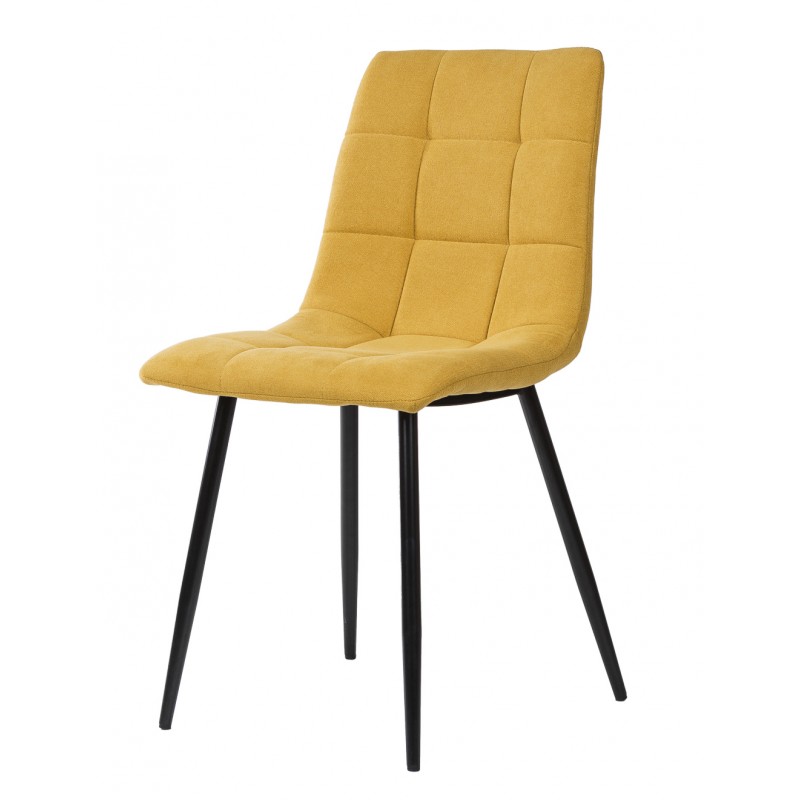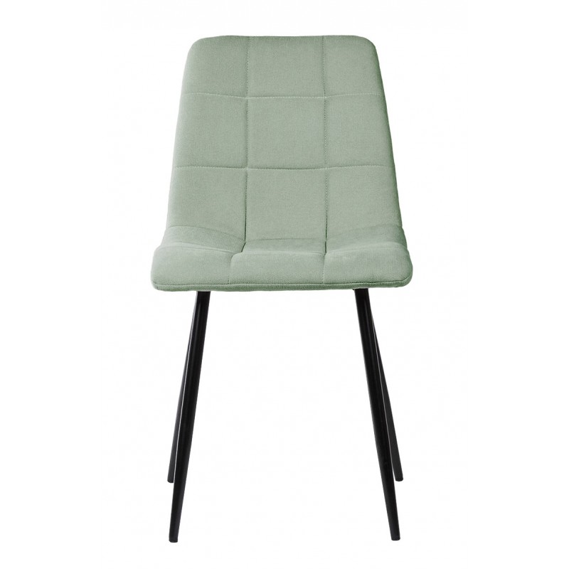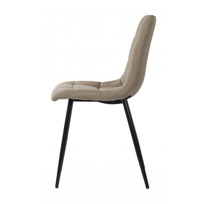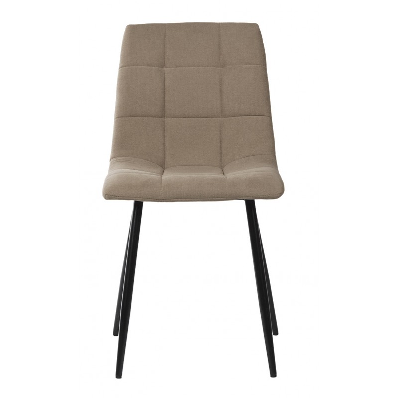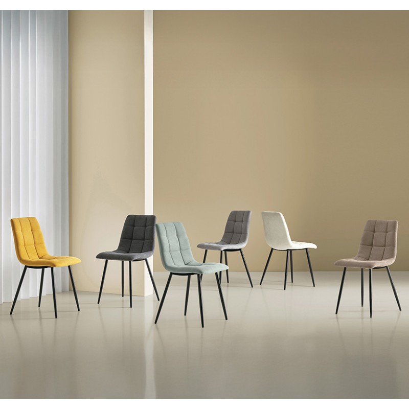 Silla de comedor BIMBA con estructura metálica y asiento acolchado tapizado, diseñada para aportar funcionalidad y estética en espacios domésticos contemporáneos. Su forma ergonómica se combina con un tapizado de textura cuadrada que destaca por su apariencia sobria y elegante.