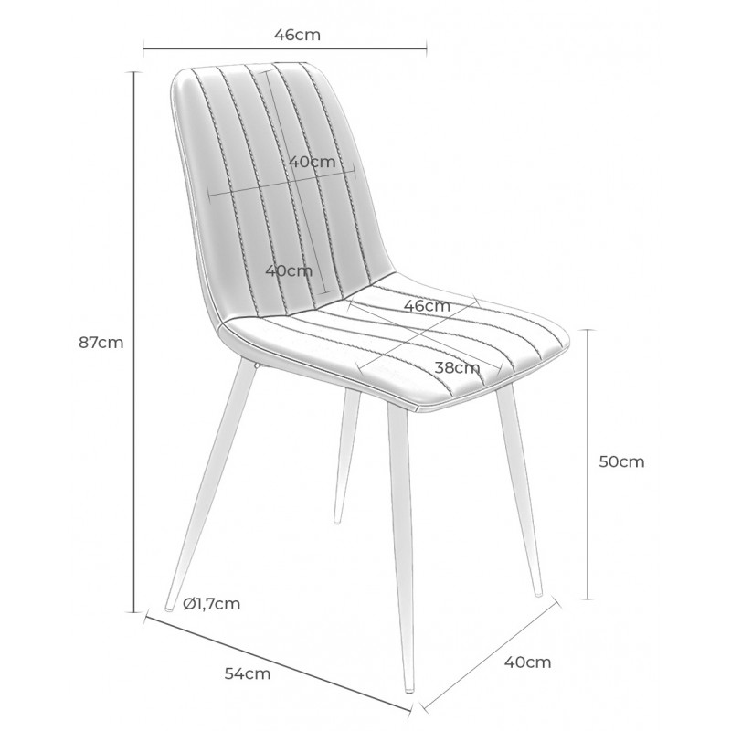 • Altura del asiento: 50 cm | Altura del respaldo: 40 cm | Ancho del respaldo: 40 cm | Ancho del asiento: 46 cm | Fondo del asiento: 38 cm.