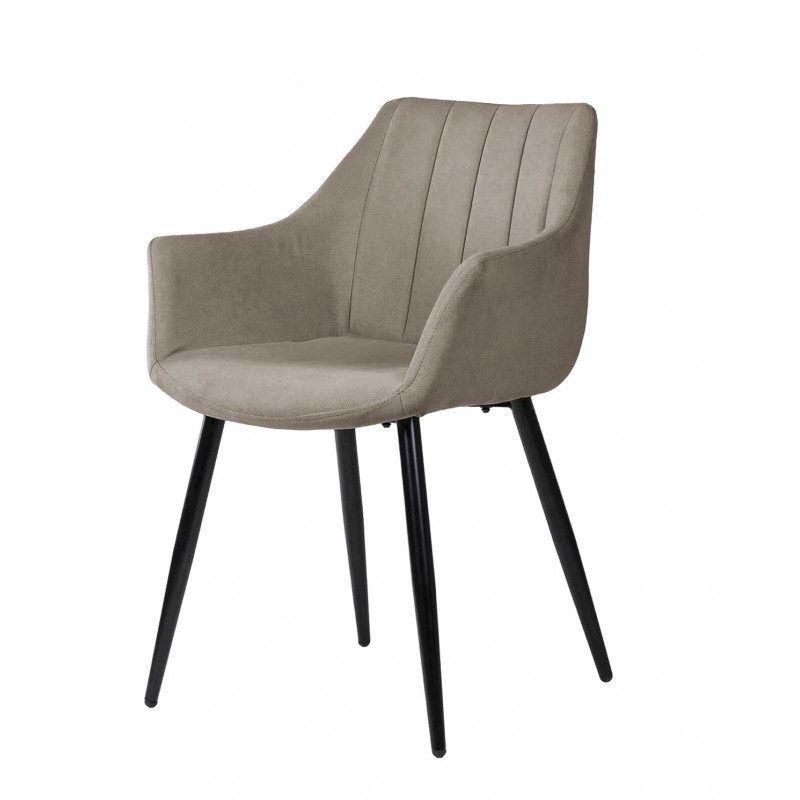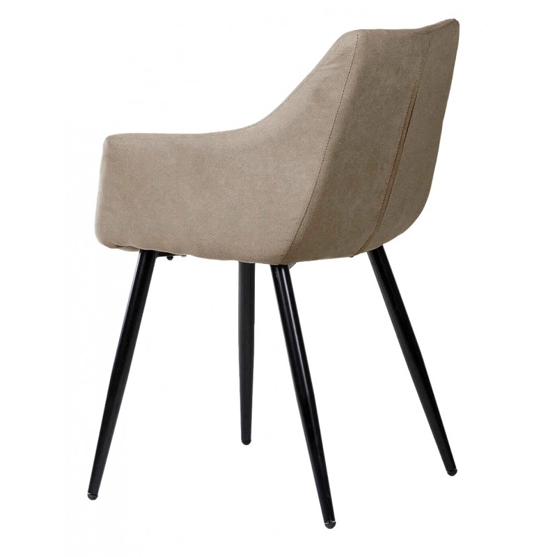 El estilo de la silla se define por un enfoque moderno y sobrio, con detalles como el respaldo curvado, las costuras verticales decorativas y las patas estilizadas, que permiten integrarla fácilmente en entornos escandinavos, contemporáneos o minimalistas. Su tapizado en tonos suaves es discreto y versátil, ideal para interiores que priorizan la neutralidad cromática y el confort visual.
